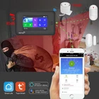 1. Compatible with Alexa and Google home: This alarm sysetm works with Amazon Alexa and Google Home for voice control ( Alexa and google home devices not included ). Just ask app Alexa on your phone to Arm / Disarm/ the whole system in a specific instruction. Remote control your Alarm system anywhere in the world with your smart cell phone, no need repeated operation! 2. WiFi & GSM Support and Auto Dialer Function: This alarm system support different alarm message info(APP Message Push / SMS Message / Voice monitoring / Sim card phone call).Wifi way. It will push alarm notification via free app when it is triggered. GSM Way: Insert 2G SIM card into the alarm system and save your phone number on it, then it will send message or call your cell phone when alarm alerts. Product Overview Tuya APP IOS/Android WIFI GSM Home Alarm System+Tuya WiFi Camera Details Package Including: Home Alarm System Main Panel * 1 Pcs(4.3Inch Full Touch Keypad) Wireless PIR Infrared Detector * 10 Pcs Wireless Door / Windows Sensor * 10 Pcs Remote Control Key * 4 Pcs RFID Tags * 4 Pcs Tuya WiFi HD 1080P 1MP Camera(Support Automatic Tracking) * 2 Pcs Wired Siren * 1 Pcs(110dB) Built-in Siren * 1 Pcs(70dB, the siren is built-in main panel) AC Adapter * 1 Pcs(US/Euro/UK/AU Power Plug, after make the payment, send me a message tell me which plug you like.) English User Manuel * 1 Pcs (NOT Including GSM Sim Card and TF Card) Question and Answer: Q: Can this alarm system work with Amazon Alexa or Google Home? A: Compatible with Alexa and Google home: This alarm sysetm works with Amazon Alexa and Google Home for voice control ( Alexa and google home devices not included ). Just ask app Alexa on your phone to Arm / Disarm/ the whole system in a specific instruction like "Alexa, please arm the alarm system". Remote control your Alarm system anywhere in the world with your smart cell phone, no need repeated operation! Q: Can this alarm system work with WIFI and GSM Sim Card together? So if the WIFI failure, can switch GSM mode to work. A:Yes. User can connect alarm system with WIFI and GSM Sim Card to work. And when Alarm System be triggered, it will push alarm message to the APP via WIFI. And if the WIFI failure, will change GSM mode auto Dial Out. Q: It just with WIFI in my house and without GSM Sim Card,can I use this alarm system? A: Yes. Alarm System can work in WIFI mode only. The alarm system only support 2.4G WiFi, NOT support 5G WiFi. Q: Can I add additional remote controllers, door sensors, pir sensors, smoke detectors, gas detectors or other sensors to work with this alarm system? A: Yes. Alarm system can work up to 99 wireless sensors(wireless freq 433MHz) and wireless Siren, unlimited Wifi Camera. Q: Does the alarm panel with backup battery? A: Yes. Alarm system with internal rechargeable backup battery. It can support work when AC Adapt is cut. Q: What's the function of RFID Tags? A: It used to touch the main panel to arm or disarm soon and easily. Main Function And Feature: 1. 4.3 inch Full Touch Screen TFT display screen, concise user interface and menu hint design 2. Main interface status bar, date/clock indication, fairly obvious alarm host status. 3. Built-in powerful performance CPU master based on 32-bit Cortex-M3 core 4. Based on u cos C III operating system with multitasking design, great user operation experience 5. WiFi/GSM/3G/GPRS intranet alarm system, support different alarm channels, like APP push/SMS/voice monitoring/intranet center etc. to ensure the alarm performance stable and reliable 6. Support SMS arm/disarm and voice arm/disarm 7. Support up to 100 learning/storage location for remote control, RFID cards and wireless detector 8. Support many defense zones, such as gate, SOS, bedroom, window, balcony, perimeter, smoke, gas, carbon monoxide, water leaking, etc. 9. Support the main power malfunction, backup power shortage, tamper alarm and other extended alarm. 10.Support entry/exit zone, indoor zone, perimeter zone, 24-hour zone, etc 11.Up to 5 groups preset alarm phone numbers, SMS on/off and dial on/off can be set respectively 12.Support external wireless siren, Support timing arm and disarm 13.Can store and inquire daily operation records and alarm records. 14.GSM network clock synchronization, to ensure accurate color, and support country time zone setting. 15.Support multi-language menu display, voice prompts and alarm SMS setting. 16.Can record 20 seconds voice message and alarm voice. 17.Telephone function, support 5 groups re-dial number. 18.User-friendly APP operation experience and user interface. Push Arm/disarm message to app. 19.Support APP remote arm/disarm, parameter setting and accessory management. 20.Online GPRS to obtain equipment status, automatic alarm when offline. 21.Reserved remote GPRS TCP / UDP protocol channel, compatible with multiple alarm center networking protocol to facilitate network alarm. Item Specification: 1. Home Alarm System Main Panel(Including Back-Up Battery and built-in siren) 4.3Inch Full Touch Keypad Wireless Frequency: 433(MHz) Built-in siren(70dB/m) Standby Current: less than 35mA Alarm Current:less than 120mA GSM transmission power: 2W WIFI Frequency: 2.4G, built-in wireless internet protocol IEE802.11b/g and TCP/IP protocol stack WIFI receiving sensitivity: -86dbm; Emitting power: 18dbm Input:AC100-240V, Output:DC5V-1A Control Range:250-500 Ft(in open area) Working Temperature: -15C~55C(5F~130F); Humidity:Less than 90% Dimension:184*144*13mm 2. Motion PIR Infrared Detector(Battery Included) Wireless Frequency: 433MHz Standby Current: less than 12uA,?Alarm Current:less than 15mA Operation Temp: -10C~50C;Humidity: 90% Installation Height: About 2M. Installation Angel:About 60~110 Detecting Distance: 5-8M Transmission Time R1s Transmit?Distance: Outdoor 100M(in open area), Indoor:10~15M Dimension:105mm*60mm*40mm(about 110g) 3. Door / Window Sensor(Battery Included) Wireless Frequency: 433MHz Operation Current:8~15mA, Quiescent Current:3uA Opera