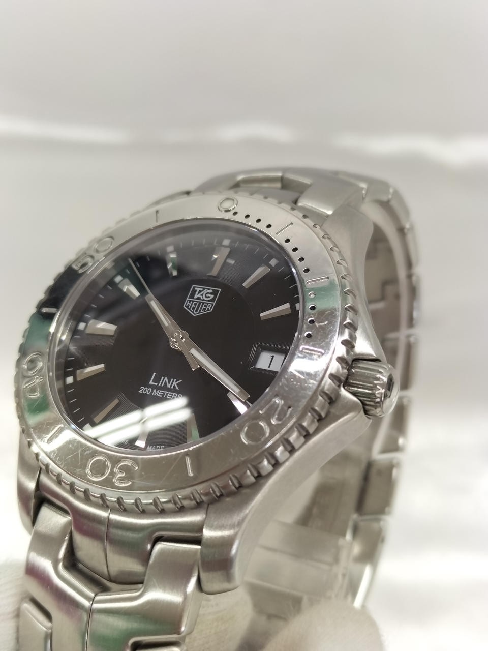 Case Material: Stainless Steel Dial Color: Black Features: Screwdown Crown, Water-Resistant, Date Indicator, Sapphire Crystal, Swiss Made, Scratch-Resistant Caseback: Solid Water Resistance: 200 m (20 ATM) Type: Wristwatch Band/Strap: Bracelet Style: Sport Manufacturer Band Color: Silver Bezel Type: Unidirectional Rotating Hour Marker Color: Silver Indices: Baton Indexes Manufacturer Case Color: Silver gtin13: 0760643058904 Model: TAG Heuer Link Brand: TAG Heuer Movement: Quartz Manufacturer Dial Color: Black Hour Hands Color: Silver Bezel Color: Silver Case Color: Silver Display: Analog Reference Number: WJ1110 Department: Men Case Size: 39 mm Band Material: Stainless Steel Dial Ring Color: Black UPC: 0760643058904 Lug Width: 19 mm Band Color: Silver