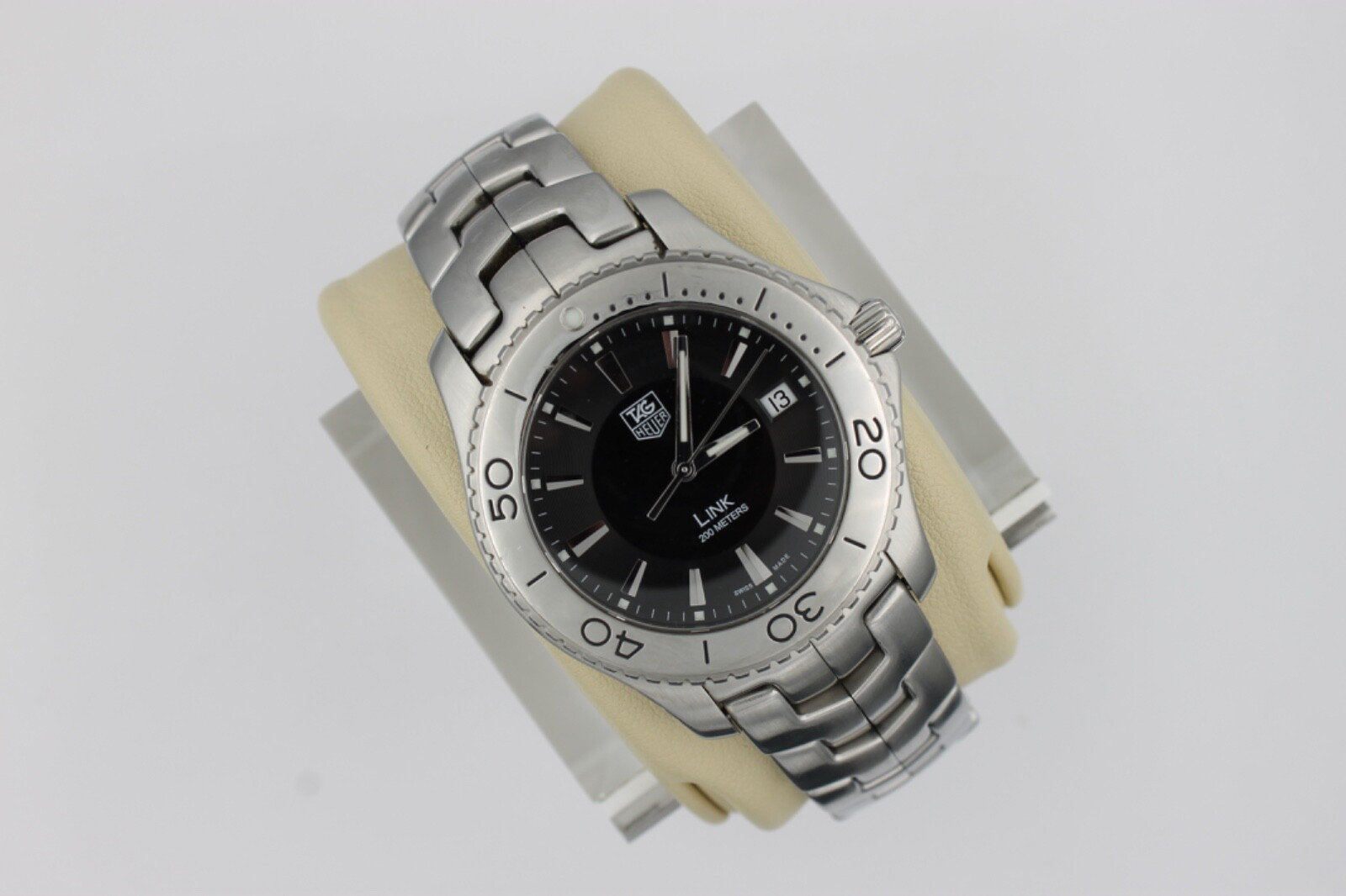 This TAG Heuer Link watch is pure luxury on the wrist! The sleek black design and polished stainless steel bracelet give it a bold, sophisticated look. The automatic movement keeps perfect time, and the scratch-resistant sapphire crystal ensures durability. Comfortable for all-day wear yet makes a powerful statement. A true classic for any discerning gentleman's collection. Stunning craftsmanship from a legendary brand!