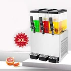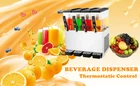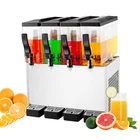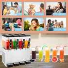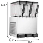 Product Introduction 【PREMIUM 304 STAINLESS STEEL 】 - The whole juice dispenser is made of superior 304 stainless steel,high-pressure resistance,and easy to clean.There are 3 types of juice dispensers you can choose,including 10L x 3 tanks (270W),10L x 4 tanks (325W ).Food grade PC tank is safe,hygienic,and tough,which distinguishes it from crisp and fragile ABS/AS plastic tank. 【LARGE CAPACITY & NO LEAK】 - Equipped with capacious tanks (10L/2.64 US Gal per tank) ,the beverage dispenser can holds a great number of drinks or pulpy beverage. Thickened PC material and the double-layered black lid enhance the heat preservation effect.The tap of the tank is equipped with new spring parts so you don't worry about the leaking problem. 【MICRO TEMPERATURE CONTROLLER】 - The juice dispenser adopts the microcomputer temperature control system.Precise temperature control,automatic constant temperature,high-efficient refrigeration,quick cooling ,energy conservation,and easy operation.It is highly practical,reliable and sensitive.Broadened stirrers enable more efficient 360° agitation. Intelligent system,strong practicality,meet your needs of various beverage in different seasons. Cold beverage temperature:7℃~12℃ 【HIGH EFFICIENT COMPRESSOR】 - The powerful and long-lasting compressor and the all-copper-tube condenser enhance greatly the refrigeration effect,more power-efficient,lower decibel and noise.The rubber gasket prevents juice from leaking the motor.Quick cooling,360-degree stirring,high efficiency.It can maintains the drink an appropriate taste between 41-53.6℉ (5-12℃) .It’s simple and convenient to set cooling and stirring function by switches behind. 【RELIABLE CUSTOMER SERVICE】 - Our commercial multifunctional drink dispenser is suitable for restaurants,bars, convenience store s, canteen s,hotels,cafeterias, beverage store s and cafes.It’s a perfect choice for milk,soybean milk, milkshake, juice, cocktail, yogurt, coffee, etc.Quality commitment:our product is provided with 18 months warranty.Please feel free to contact our customer service if you have any questions about our product. Features 1. FOOD GRADE MATERIAL The main parts of our juice dispenser are made of 304 stainless steel and food grade PVC tank,it is manufactured by us based on absorbing the technologies from home and abroad. Reasonable configuration and excellent performance. 2. LARGE CAPACITY & NO LEAK Equipped with capacious tanks (10L/2.64 US Gal per tank) ,the beverage dispenser can holds a great number of drinks or pulpy beverage. The tap of the tank is equipped with new spring parts so you don't worry about the leaking problem. 3. POWERFUL COMPRESSOR The powerful and long-lasting compressor and the all-copper-tube condenser enhance greatly the refrigeration effect,more power-efficient,lower decibel and noise. Quick cooling,360-degree stirring,high efficiency. 4. AUTOMATIC TEMPERATURE CONTROLLER The juice dispenser adopts the microcomputer temperature control system,each tank is separately controlled by buttons behind. Precise temperature control,automatic constant temperature,high-efficient refrigeration. 5. MULTIPLE HUMANIZED DESIGNS The double-layered black lid enhances the heat preservation effect. Add the drip tray to avoid frequent water disposal. Bottom supporting feet prevent the table from scratch. Multiple air vents for fast heat dissipation. 6. WIDE APPLICATION This beverage dispenser is suitable for holding milk,soybean milk, milkshake, juice, cocktail, yogurt, coffee, etc. It is widely used in restaurants,bars,canteens,hotels,cafeterias,beverage stores and cafes. Advantages Pretty appearance :The main parts are made of stainless steel and PVC tank,very clean and healthy. Intelligent configuration :A microcomputer temperature control system that the machine has functions of automatic constant temperature and high-efficient refrigeration. Excellent performance :The powerful and long-lasting compressor and the all-copper-tube condenser enhance greatly the refrigeration effect. No leak design :Equipped with new spring parts,the tap will not occur the leak problem,the drip tray also can prevents water pollution. Simple operation :Each tank is separately controlled by buttons behind,you can control the temperature just by pressing the button. Specification Power: 270W Total Capacity: 7.93 US Gal ( 10L x 3) Temperature: 5~12℃ (41~53.6℉) Refrigerant: R134A Gross Weight: 59.5 lbs (27 kg) Machine Size: 15.7" x17"x24.6"(400x430x625mm) Power: 325W Total Capacity: 10.6 US Gal (10L x 4) Temperature: 5~12℃ (41~53.6℉) Refrigerant: R134A Gross Weight: 72.6 lbs (33 kg) Machine Size: 20.7" x17"x24.6"(525x430x625mm) Package Contents 1 x Cold Drink Machine 1 x Poster 1 x User Manual Additional Wearing Parts