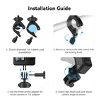 Features: 【High-Quality Material】The camera handlebar mount is made of premium ABS plastic, stainless steel, and rubber, ensuring its durability and sturdiness. 【Lightweight and Compact】With its lightweight and compact design, this camera mount is easy to carry and use. It can easily fit into your bag or pocket. 【360-Degree Rotation】Equipped with a adjustable link, this mount allows you to rotate your device 360 degrees, which provides you with the flexibility to capture images and videos from various angles. 【Secure Locking Mechanism】The bike clamp for GoPro is designed to securely lock your camera onto your handlebar, offering rock-solid reliability. 【Various Perspective】This camera mount is a great tool for capturing the perspective of vehicle. It's an excellent way to take photos of yourself or the people following you. 【Wide Compatibility】This clamp mount is suitable for handlebars with a diameter of 22-38mm and with a fixed sports camera adapter and a phone clip, you can have various devices installed onto the handlebar adapter mount. Specifications: Color: Black Material: Plastic + Stainless Steel Diameter Range: 9-16/22-38mm Item Dimensions: 19.7 * 7 * 2cm Weight: 59.5g Packing List: 1 * Clamp Mount 1 * Fixed Screw 1 * 1/4in Adapter 1 * Rubber Pad 1 * Manual