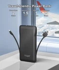Portable Charger with Built in Cables: Slim portable charger with built-in cables,USB-C and micro-USB cable. All in one portable charger, you would not need to carry various cables or adapter any more High Speed Charging: High speed 5V 3.1A max output, the built in three cables with one USB port allows for charging your compatible iPhone and Android phone devices at the same time.Perfect portable phone charger compatible with iPhone 16 Pro, 16,iPhone 15 Pro, 15,14 Pro, 14,13 Pro, 13, 12 Pro, 12, 12 Mini, 11 Pro Max, 11 Pro, 11, XS Max, XS, X, 8 Plus, 8. Also equipped with type-C cord for Android phones compatible with Samsung S21, S20, S10, etc Portable Charger for Multiple Devices: This Portable phone charger is designed with 4 outputs: 2 Cables outputs charging and additional USB C and USB A outputs.It supports 4 devices charging max simultaneously. The bidirectional Type-C ports works as input and output.Each of the cables and USB ports output supports 15W max fast charging Compact Design with Powerful Capacity: Cover with UV oil body design for dirty-resistance and wear-resisting, the 10000mAh rechargeable capacity can provide about 2-3 charges for your phones, enjoy your trip without worry about the power What You Get: 10000mAh Black Battery Charger x 1,USB Type-C Charging Cable x 1 and User Guide x 1