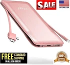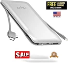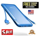 Brand New. Factory Sealed. Warranty. Fast Free Shipping TG90° 10000mah Power Bank Portable Charger with Built-in Cables, Portable Phone Charger Battery Backup Compatible with iPhone Android Phones Connector Type USB Type C Brand TG90° Battery Capacity 10000 Milliamp Hours Color Blue Special Feature Auto Shut-Off, LED Indicator Lights, Over Charging Protection, Built In Cable, Pocket Size About this item 【Power Bank with Built in Cords】 Multifunctional portable phone charger with built-in USB-C charging cable,micro USB cable and other cable, which can directly charge all your mobile phones and other smart devices, do not need to carry any extra charging cables for your devices any more. 【High Speed Charging】 High speed 5V 3.1A max output, the built in three cables with one USB port allows for charging your compatible iPhone and Android phone devices at the same time. 【Compact Design with Powerful Capacity】 Cover with UV oil body design for dirty-resistance and wear-resisting, the 10000mAh rechargeable capacity can provide about 2-3 charges for your phones, enjoy your trip without worry about the power. 【Intelligent Safety Protection】 High quality Li-polymer cell with multi-protect system microchips. Supports over-charged, over-discharged, over-voltage, over-current and short circuit protection; Supports 500+ recharge cycles over the life of the battery. 【What's You Get】 1 * 10000mAh Portable Charger, 1 * USB Charging Cable, Worry-free 12-month warranty and friendly customer service. Product Description Previous page Next page 1 Lightweight and Slim 2 Built-in Multi Cords 3 Phone Battery Backup Power Bank for Heated Vest This portable charger is compact but has high capacity with 10000mah, which is perfect for USB mini fan, heating vest. Besides, the built-in cords also support to charge cell phones anytime anywhere without any extra cables. Portable Pocket Charger for Travelling The pocket friendly design makes it easier to carry around especially while traveling. The 37Wh power of this battery bank is allowed to carry on the plane.