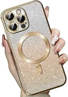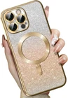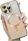 TIESZEN Magnetic for iPhone 15 Pro Case Glitter [Compatible with Magsafe]| Full Camera Lens Protection & 2X Screen Protector| Luxury Plating Bling Soft Shockproof Slim Phone Case for Women| Gold