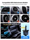 The product is a phone holder made by TOPK brand. It is a universal cell phone holder that can be attached to air vent or dashboard of a car. It has a gravity expansion character and is designed to hold phones securely. The phone holder is black in color and made of plastic. It has a hook and loop fastener for easy attachment and detachment. The product is compatible with many phone brands and is a hands-free mount for easy use.