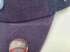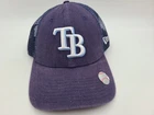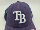 Has discoloration on the brim, front, and underneath the brim as seen in photos. It also seems like there will be a mark left over if the sticker is removed. Tampa Bay Rays New Era 9Forty Mesh Trucker Snapback Hat Cap Men MLB Blue/Purple. EACH ADDITIONAL HAT PURCHASED IS ONLY $1 ADDED SHIPPING!