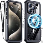 Temdan for iPhone 15 Pro Max Case 15 6.7, Black-Mag Product Details Product Dimensions: 6.3 x 0.59 x 3.15 inches Item Weight: 4.2 ounces Item model number: iPhone 15 Pro Max Special features: ②9H HD Photography③IP 68 waterproof④Slim Fit⑤Heavy Duty Protection⑤Screen Protector⑥Clear back⑦Compatible with MagSafe Other display features: Photography Form Factor: Basic Case Color: Black-Mag Whats in the box: 1X iPhone 15 Pro Max waterproof case 1X User Manual1X Lanyard 1X Cleaning Cloth 3*Mute button replacement membrane Manufacturer: Temdan Brand: Temdan Compatible Phone Models: iPhone 15 Pro Max Material: ♻️ HD PET Logo Display, ♻️ Thermoplastic Polyurethane, ♻️ Hard PC Frame, ♻️ Soft TPE Volume Buttons, ♻️ Soft PP Back ♻️ HD PET Logo Display, ♻️ Thermoplastic Polyurethane, ♻️ Hard PC Frame, ♻️ Soft TPE Volume Buttons, ♻️ Soft PP Back♻️ HD PET Logo Display, ♻️ Thermoplastic Polyurethane, ♻️ Hard PC Frame, ♻️ Soft TPE Volume Buttons, ♻️ Soft PP Back See more 【IP68 Waterproof】Temdan waterproof case ONLY designed for iPhone 15 Pro Max case 2023 New. Temdan iPhone 15 Pro Max Case is IP68 Waterproof Certified, submerged to 6.6'/1.5 m for 30 minuites. And the iPhone 15 Pro Max Case is perfect for outdoor activities like swimming, snorkeling, surfing and more. We suggest doing waterproof test to the case, before taking it into water with a phone in it. What's more, wireless charging compatible. 【Built-in Screen & HD Camera Protector】Temdan iPhone 15 Pro Max case provides 100% comprehensive front and back protection to your device with its built-in screen camera protector, maintains 99.99% response sensitivity and never scratches. the HD lens protector keeps the camera scratch-free, ensuring an ultra-clear photo-taking experience underwater. 【360 Full Body Protection】Temdan 2023 New Shockproof Designed for iPhone 15 Pro Max Case is certified to exceed Military Grade Drop Test standards and survive drops up to (3.6m). Unique double layer shock-absorbing design, 4 anti-collision corners effectively absorb and disperse 99% of the impact force. Provides super drop and shock protection for your phone. 【Clear Sound Quality】Designed for iPhone 15 Pro Max waterproof case introduces special materials, while providing full body protection, it can maintain clear sound quality. You don't need to worry about the protective case that will affect the volume, enjoy music!