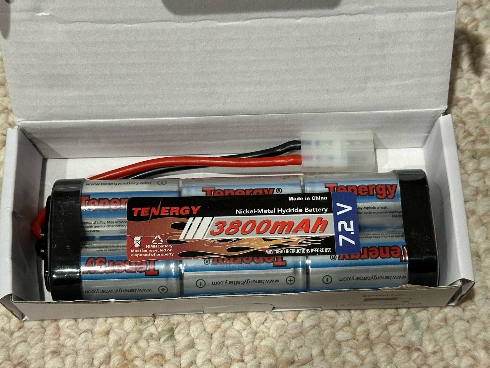New never used Power up your radio-controlled car or flashlight with the Tenergy 7.2V 3800mAh 6-Cell NiMH Rechargeable Battery Pack. Specifically designed for RC cars and tanks, this reliable energy source boasts a high capacity that provides extended run times, ensuring your enjoyment is uninterrupted. The Tamiya plug compatibility makes it easy to power up your favorite models without the need for modifications. The battery pack features robust NiMH technology, offering a consistent and safe power delivery. With its versatile applications extending to flashlights, this battery pack is a suitable choice for a variety of devices. The model number 7.2V 6S 3800mAh NiMH Battery Pack, along with the manufacturer's part number 11200, ensures you're getting a genuine product with dependable performance.