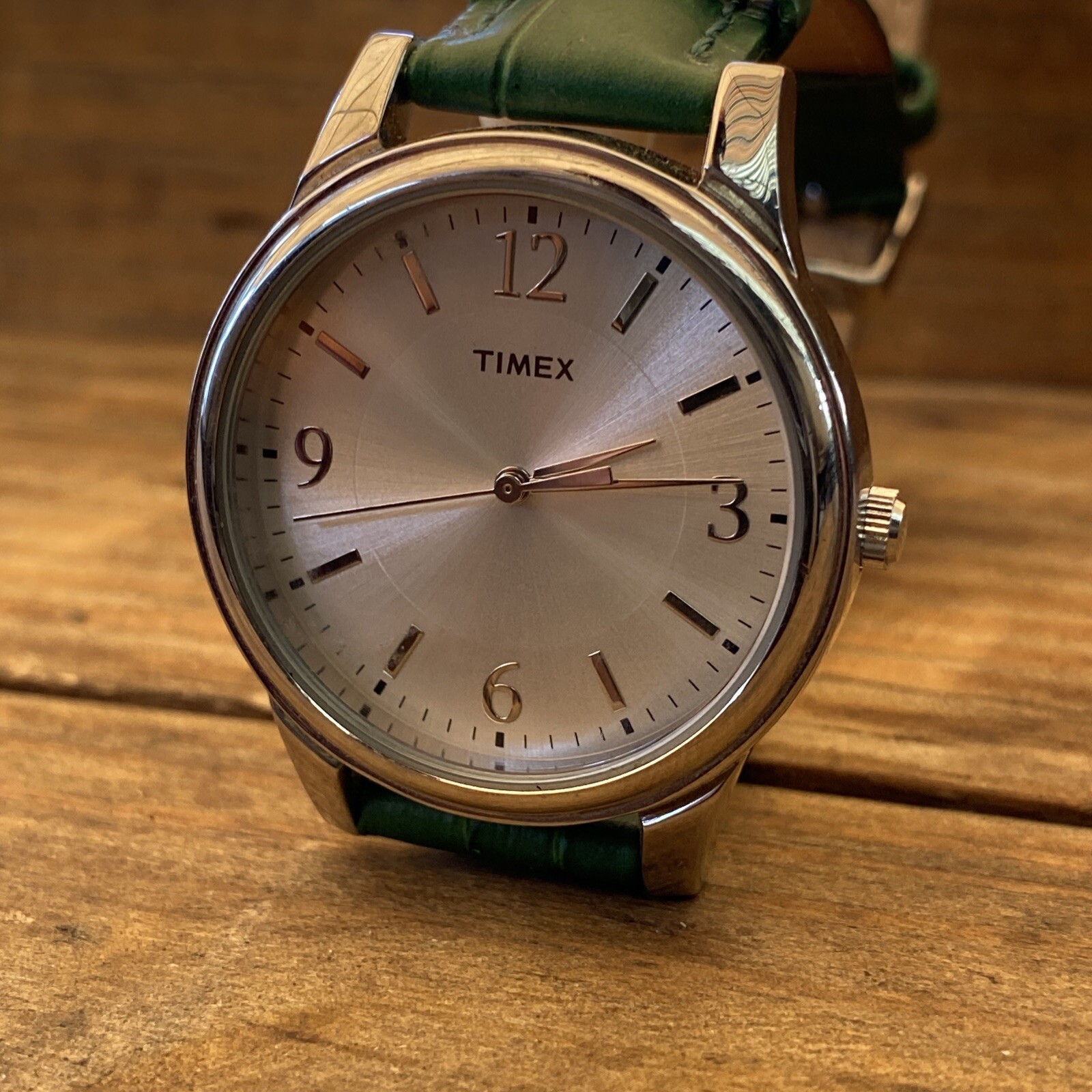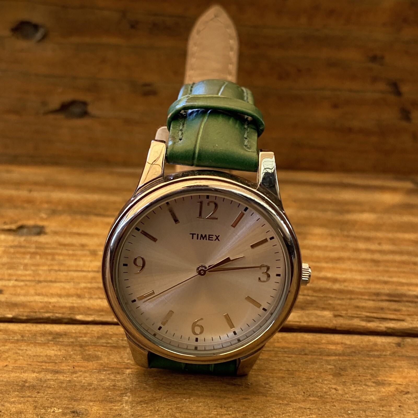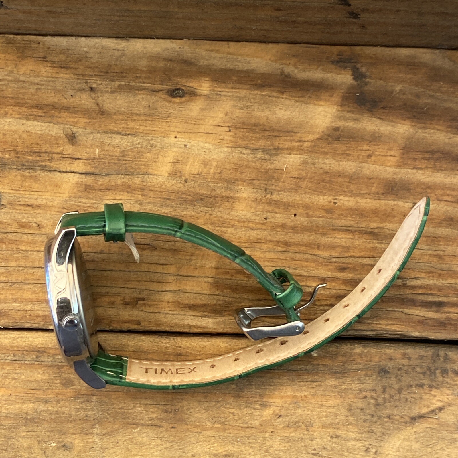 Elevate your wrist game with this stunning Timex wristwatch. Crafted with a silver-tone case and a green leather band, this watch exudes sophistication and style. The green bezel and dial color complement the band, making it a perfect accessory for any occasion. This wristwatch is designed for women and features a 35mm T2P092 model. The watch is branded by Timex, a renowned name in the watch industry. It is perfect for those who are looking for a stylish and functional accessory. WSA-7