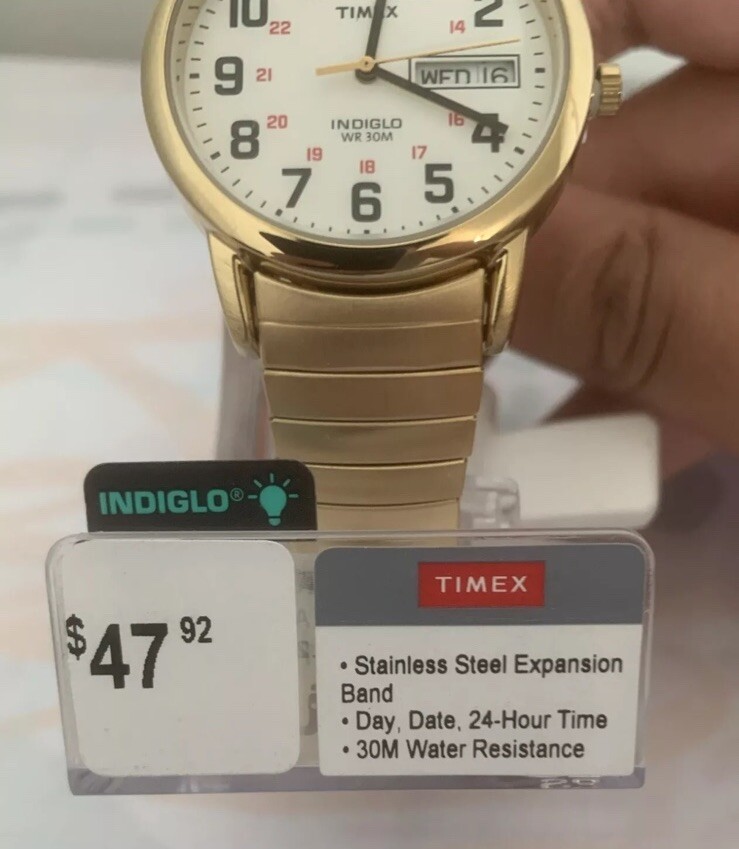This Timex Easy Reader is a fantastic everyday watch—simple, elegant, and super functional. The gold-tone finish gives it a classic look, while the Indiglo backlight makes checking time in the dark effortless. The expansion band ensures a comfortable fit, and the day/date feature is super handy. Perfect for those who want reliability without sacrificing style. Love it!