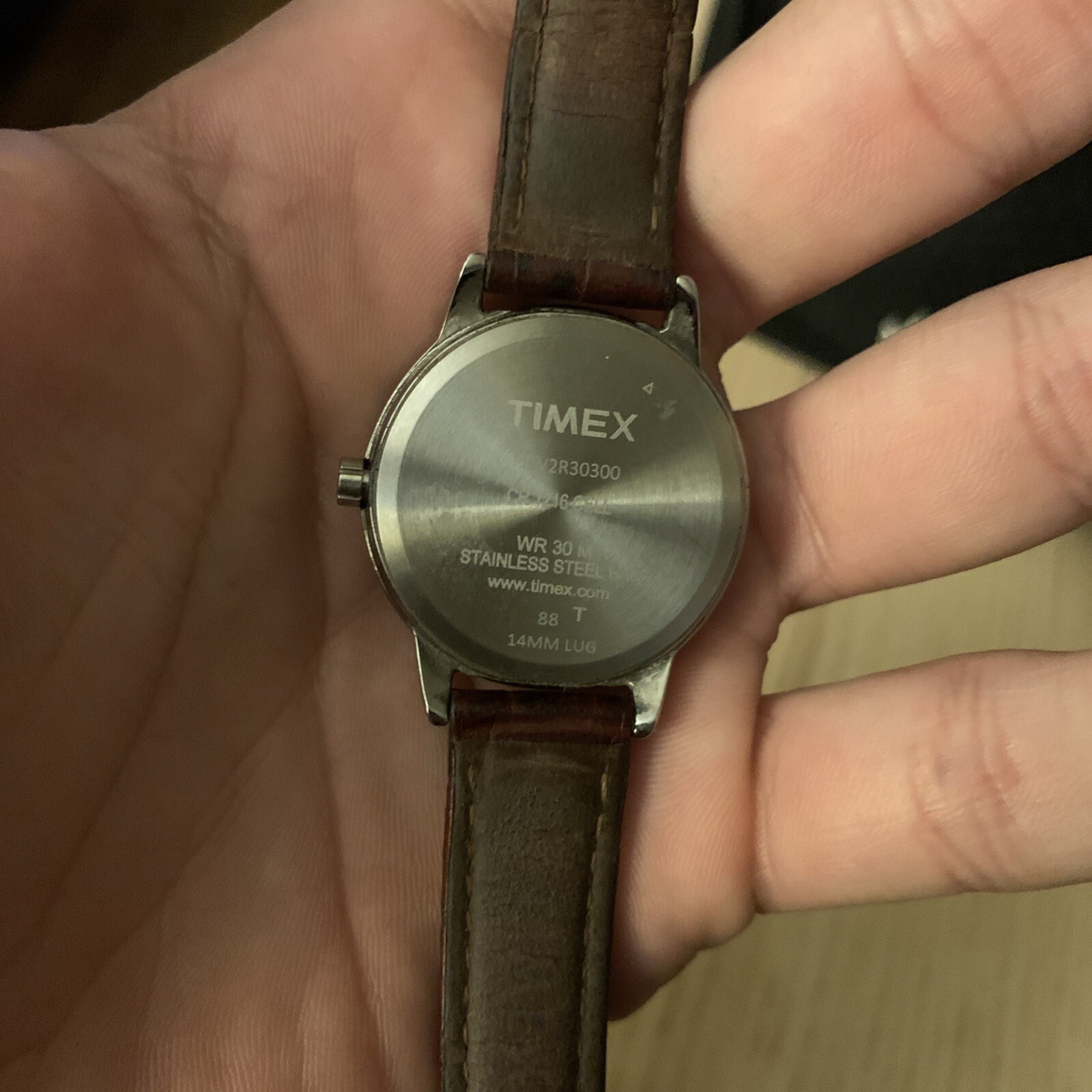 The Timex Indiglo Leather Strap Quartz Analog Watch WR30M is a classic and casual timepiece suitable for both men and women. With a sleek silver stainless steel case and a matching buckle closure, this watch features a white dial with Arabic numerals and a date indicator. The brown leather strap adds a touch of style, while the quartz movement ensures accurate timekeeping. This watch is water-resistant up to 30 meters and comes with a snap caseback for easy maintenance. Perfect for everyday wear, this Timex watch is a timeless piece that is both stylish and functional.
