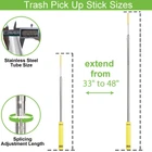 Quality Material:trash picker upper grabber heavy duty is made of thickened stainless steel tube material, not easy to rust. The trash stick pickup is different from other aluminum grabber reacher tool heavy duty, our bearing capacity is stronger, more durable, not easy to bend, it is a necessary tool for picking up paper scraps, cans and other garbage. Adjustable Size: This garbage picker upper tool can be extended from 33 inches to 48 inches, pick up stick grabber for yard work is suitable for adults, seniors, and kids, adjustable to different sizes according to different needs to protect your back. Featuring 6 inches trash grabber tool heavy duty tip can handle a large amount of trash, and the trash is not easy to fall off. Widely Used: The trash picker grabber heavy duty can easily collect trash from your yard, trash grabber long is used to pick up many kinds of outdoor trash that blow away. For example: cans, paper towels, plastic bottles, metal trash, etc. It can also be used for fishing as a frog gig pole. Easy to Use & Store:This trash grabbers heavy duty has comfortable foam grips for more comfortable use, better grip and non-slip. The end of the trash pickup grabber heavy duty also features hanging holes for easy hanging and storage. Tips: The picker upper grabber tip is equipped with a safety cover, remove it when using it and cover it when storing it for your own protection. We recommend not using the trash picker stick on hard concrete floors! A parent needs to accompany the child when using our garbage grabber tool heavy duty!