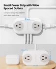 Not just a portable travel power strip with USB outlets, it's also ideal for daily use due to its compact size, multiple outlets, and wall mount design. One mini power strip for daily use, work and travel! Space Saving--45° Right Angled Flat Plug Unlike the traditional plugs, the 0.39" ultra-thin flat plug could easily fit behind any furniture which is close to the wall, maximum saving your outlet space occupied. Its 45° right-angled design makes the flat plug not block the bottom receptacle of your duplex wall outlet and free up the receptacles for other uses. Versatile Charging--4 AC Outlets & 3 USB Ports The low profile power strip allows you to charge up to 7 devices simultaneously with 4 widely-spaced outlets & 3 smart USB charging ports, providing up to 1250W of power. With smart charging technology, the USB ports will detect plugged-in electronics automatically to provide optimal current and the fastest charging speed possible, up to 2.4A each port, 3.1A/15.5W in total. Travel Friendly--Compact, Portable & No Surge Protection The small, light and compact power strip is easy to pack and fit into your carry-on or bag without taking up much space. Comes with a Velco wrap tie, the 10 ft power cord could be nicely wrapped up. Besides, the long cord power strip is designed with NO surge protection, making it fully cruise ship approved. The cruise power strip cruise approved is one of your must have travel essentials. Clutter-Free Power--Wall Mountable Design The USB extension cord has 2 screw holes on the back so you can mount it wherever you needed, saving your space and making your desktop organized. Besides, 2 screws and one mounting template are included in the package. It would be very easy and effortless to install the power extension cord on wall or desk. 【 7-in-1 Clutter Free Power】4 AC outlets and 3 USB ports(1250W/125V/10A), power up to 7 devices simultaneously. Lightweight and compact, easy to pack for on-the-go 【Wall Mountable & Small Size】 Come with two mounting holes (2 screws included) and mounting template paper for wall mounting ease. Its small size takes up less space and keeps your desk organized 【Right Angled Flat Plug 】With 0.39" thin flat plug and 45° right-angled design, the outlet extender can easily fit in tight spots, like behind furniture, sofa, bed, TV cabinet, or nightstand, and won't block the bottom receptacle of your duplex wall outlet. Maximum space saving and no waste for outlets 【USB Smart Charging】Equipped with smart IC, the USB ports will detect plugged-in electronics automatically to provide optimal current and the fastest charging speed possible, up to 2.4A each port, 3.1A in total 【Cruise Accessories Must Haves】With NO surge protector, the power strip is fully cruise ship approved. Certified by ETL and FCC, and made of fire-resistance material (fireproof up to 1382°F), the USB power strip can prevent your electric devices from over-current/over-charge/short circuit/over-heated