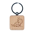 Triceratops Dinosaur Split Monogram Name Engraved Wood Square Keychain Tag Charm