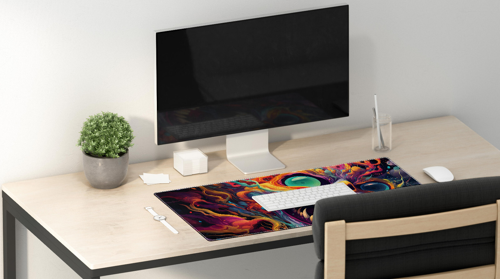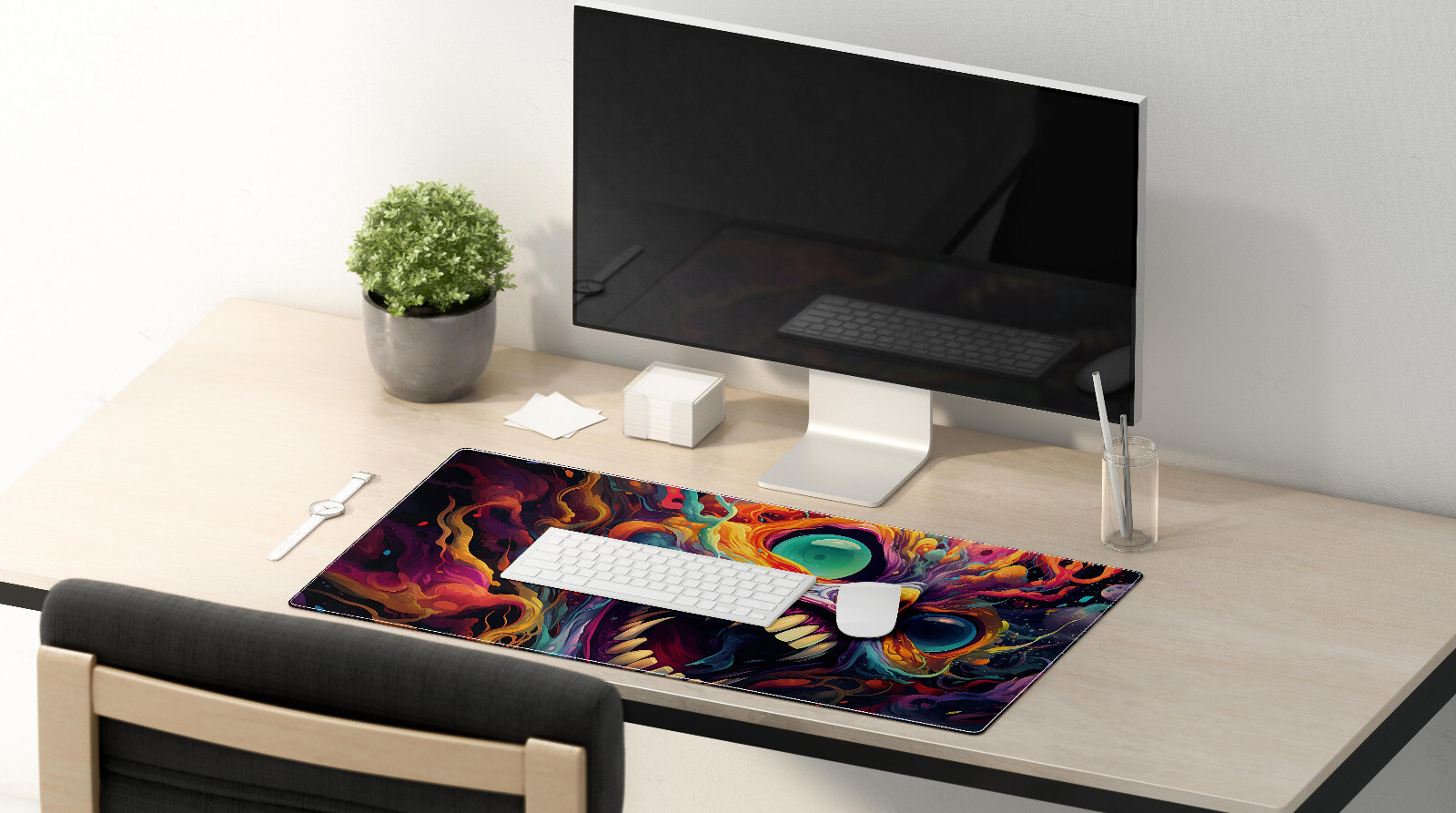 Introducing our premium pre-designed deskpads, meticulously engineered to elevate your workspace with both style and functionality. Crafted with the needs of modern professionals and gamers in mind, our deskpads boast a range of features designed to enhance your experience: Trippy theme dab mat Universal Mouse Compatibility: Whether you're using an optical or laser mouse, our deskpads offer reliable support, ensuring smooth and precise tracking for uninterrupted productivity or gaming. Smooth Surface: Experience effortless mouse movements with our deskpads' ultra-smooth surface, providing optimal glide and control for enhanced productivity or gaming performance. Durable Construction: Bid farewell to frayed edges ? our deskpads are equipped with anti-fray edges, ensuring long-lasting durability and a professional appearance for years to come. High-Quality Materials: Crafted with premium materials, including a 100% polyester front and a 100% natural rubber backing, our deskpads offer a luxurious feel and reliable grip to keep your workspace in place. Generous Size: With dimensions of 31.5" × 11.5" (80cm × 39.4cm) or 35.4x15.7 inches, our deskpads provide ample space to accommodate your keyboard, mouse, and other essentials, promoting a clutter-free and organized workspace. Non-Slip Base: The sleek black non-slip base ensures that your deskpad stays securely in place, preventing any unwanted movement or sliding during intense work or gaming sessions. Proudly Made in the USA: Experience the quality and craftsmanship of a product made in the USA, reflecting our commitment to superior standards and customer satisfaction. Convenient Shipping: Your deskpad will be shipped directly from Florida, ensuring prompt and reliable delivery to your doorstep. Please Note: Color Accuracy: While we strive for accuracy, please be aware that colors shown on the screen may slightly differ from the physical products due to variations in display and print. However, any differences should be minimal and will not compromise the overall aesthetic of your workspace. Easy Maintenance: Keep your deskpad looking pristine with simple cleaning instructions ? just use light soap, water, and paper towels to remove spills or dirt. Avoid machine washing to preserve the integrity of the materials and maintain optimal performance. Upgrade your workspace with our premium deskpads ? designed to combine style, functionality, and durability for a truly elevated experience. Printed and Shipped from FL, USA