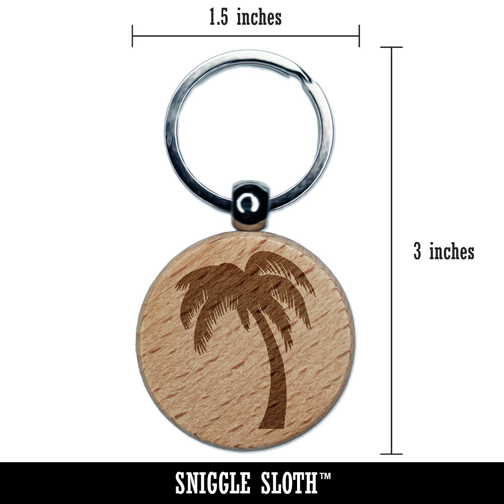 Tropical Palm Tree Engraved Wooden Round Keychain Charm