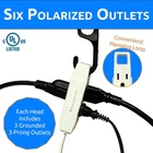 BEST PRICING FREE SHIPPING HIGH QUALITY Twin Extension Cord Power Strip 3 Prong 12 Foot Cord 6 feet on Each Side Flat He DETAILS 3- Prong "TWIN CORD" Wall Hugger Polarized Extension Cord (12 Feet | 3.6 meters Long) - 6 ft long cords on each end. Slim De allows you to hide behind any TV, Coh, Sofa Computer Desk, Dresser, Table, nightstand or Furniture. This 3 Prong Unique split electrical cord plugs in to any outlet from the middle of the cord & has a 6 foot extension cable on each end - Ideal for Bedroom, Living Room, office, Kitchen, Tree House or anywhere that needs additional outlets. Sleek Flat Head Plug (Wall Hugger) stays close to Wall & is Ideal for Tight Spaces, Great to plug in your Clock, USB adapters, lamp, Night light, Baby monitors, Charger, lights or any of your multiple electric gadgets. 3 Polarized Three Prong Outlets on each adapter, Heavy Duty and Extra light Weight de. UL Listed for Safety | Max Amps: 13 | Max Volts: 125 | SPT- 2 Condtor 16AWG | Low Profile flush de. Shipping Shipping Policies: We ship to the Lower 48 States only (Does NOT include Hawaii or Alaska) We cannot ship to APO's We cannot combine shipping. No Local Pickup. Payment & Return PAY SAFE: PAYPAL PAYMENT IS ACCEPTED We offer a 30 day return policy. Your satisfaction is guaranteed! If for any reason you are unhappy with your item, just return it within 30 days for a full refund, minus shipping cost. Please contact us prior to initiating a return so that we can issue you a refund authorization. DELIVERY TIMES Domestic lower 48 free shipping is expedited. We have many different shipping locations depending on the product you buy and the shipping location that you choose. We try to ship most items within 24 hours of payment Monday-Friday. Feedback 100% satisfied customers. It says it all. BEST PRICING FAST SHIPPING HIGH QUALITY