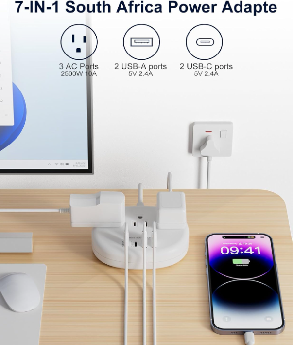 Free eBay listing template designed by dewiso.com South Africa Plug Adapter, Type M Adapter for South Africa with 3 American Outlets 4 USB Ports (2 USB-C) Total 24W -FREE AND FAST 2-3 DAYS DELİVERY- About this item: 【South Africa power adapter】 Compatible in most overseas countries such as Bhutan, Botswana, India, Israel, Lesotho, Macau, Malaysia, Mozambique, Namibia, Nepal, Pakistan, Singapore, South Africa, Swaziland (Eswatini), Sri Lanka (It can not work in Kenya). Ideal for traveler, business and study abroad use in airports, hotels and dorm room. 【7 in 1 South Africa Outlet Converter】The South Africa plug adapter accepts the standard N American 2 or 3 prong plug, max capacity up to 2500 watt (max 250 Volt, 10 A); Compatible with cellphone, laptop, tablet, earphone or cameras without a variety of plug converters, keep your desktop organized. 【 Compact and Lightweight】At only 9 oz, 4.3*3.3*1.1 inch small design make usa to south africa plug adapter for travel easily fit into your luggage and briefcases; No surge protection, 3 Ft extension cord let the south africa outlet converter fully cruise ship approved. Certificated by ETL & UL, it is 100% safe for you to use it.The blue indicator let you know the power is on/off. 【South Africa Power Strip with USB C Ports】Compare with other 15W power strips, the south africa extension cord provice 2 usb-c for Apple devices, each can charge up to 5V/2.4A Max, all usb ports output is 5V/4.8A, 24W max. South Africa charger adapter with smart charging technology, it can automatically detect your connected devices and can achieve faster charging efficiency, which would charge your devices WITHOUT a variety of converters. The Type-C port doesn't support Macbook Pro or any other laptops which needs 14~22V ch. Note: Plug adapter for south africa is not a voltage converter. Only works on 100V to 250V wide voltage devices. If you want to use your hair dryer, straightener or curling irons, they need to support wide voltage, or you may need a power voltage converter. Contact us We can be contacted at any time through eBay messages if you have any questions, comments or product requests. We will respond to you within 24 hours and do our best to help you out! We encourage our customers to contact us with any questions or concerns! We'd like to be sure you are completely satisfied with your purchase. Payment Lorem ipsum dolor sit amet, consetetur sadipscing elitr, sed diam nonumy eirmod tempor invidunt ut labore et dolore magna aliquyam erat. labore et dolore magna aliquyam erat. Shipping Lorem ipsum dolor sit amet, consetetur sadipscing elitr, sed diam nonumy eirmod tempor invidunt ut labore et dolore magna aliquyam erat. labore et dolore magna aliquyam erat. Disclaimer Lorem ipsum dolor sit amet, consetetur sadipscing elitr, sed diam nonumy eirmod tempor invidunt ut labore et dolore magna aliquyam erat. labore et dolore magna aliquyam erat.