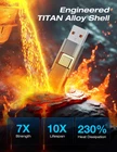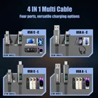 [4-in-1 Versatile Cable] Fast Charging Cable is designed to simplify your life. It has four ports, combines - USB C to USB C, USB C to L, USB A to L, and USB A to C - in cable. cable meeds all your charging needs [Smart LED Display] This multi charging cable built-in smart chip that can display real-time output power. Make the charging speed visualized, and know the charging status at any time [TITAN Alloy Shell] The shell of the USB C cable is made of TITAN Alloy developed by , which increases the strength by 700% and the life span by 10 years [65W Fast Charging & Data Transfer] This charger cord provides up to 65W Output. The can be charged up to 65% in 30 minutes. In addition, 4 in 1 charging cable also supports data transfer, 1G file transfer takes only 19 seconds [CarPlay & Android Auto Support] This multi charging cable supports CarPlay & Android Auto, navigating and charging at the same time. No matter what your family and friends in the car are using, cable charging all. Make life more convenient [Anti-Tangle & Easy to ] The flat design of the charger cord prevents tangles and knots. In addition, the cable comes with Velcro, which keeps cable well organized when not in use