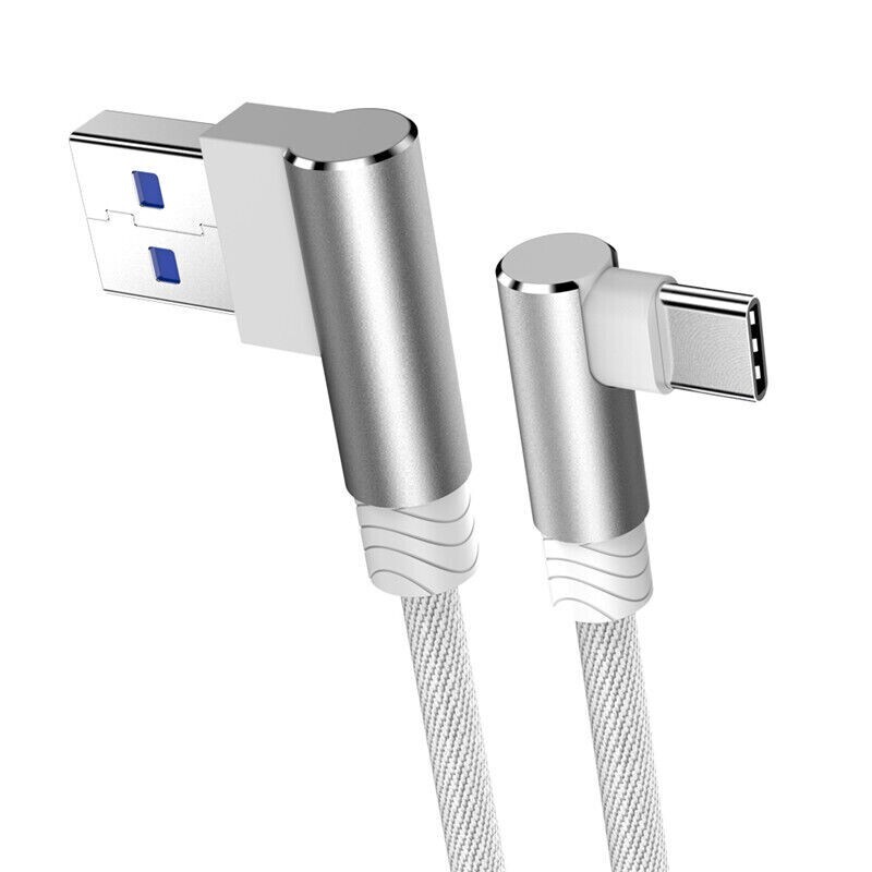 Premium Nylon Braided 1M 180 Degree USB C Charging Cable Fast Data Sync Charger Connector Adaptor Reversible USB C Cable Compatible with Samsung/Huawei more Features: USB Type-C Connector : The cable features a USB Type-C connector, which is a reversible connector that can be plugged in either way, eliminating the need to fumble with the orientation. Right-Angle Design : The right-angle bend in the cable enables a more ergonomic and convenient connection to devices. It's especially beneficial for devices that are placed on surfaces close to walls or other obstructions. Braided Jacket : The cable is encased in a braided jacket, which adds a layer of protection against wear and tear. The braided design enhances the cable's durability and flexibility, reducing the risk of fraying and tangling. Enhanced Durability : The braided construction combined with reinforced connectors ensures a longer lifespan, even with frequent use. This durability is particularly valuable for individuals who are always on the go. Charging and Data Transfer : The cable supports fast charging capabilities, allowing you to charge compatible devices at a quicker rate compared to standard cables. Additionally, it enables high-speed data transfer between devices, ensuring efficient syncing of files and media. Versatile Compatibility : A Type-C right angle braided cable is compatible with a wide range of devices, including smartphones, tablets, laptops, and other gadgets that feature USB Type-C ports. Varied Lengths : These cables are available in various lengths to suit different needs, ranging from short cables for desk use to longer cables for charging across rooms. Stress Relief : The right-angle design also acts as a stress relief point, reducing the risk of cable damage near the connectors and increasing the cable's overall longevity Description: A Type-C right angle braided cable is a versatile and convenient accessory designed to provide efficient charging and data transfer capabilities while offering enhanced durability and ease of use. This cable is specifically engineered with a USB Type-C connector on one end and a right-angle design that offers a 90-degree bend on the other end. This right-angle configuration is intended to alleviate stress on both the cable and the connected devices, making it particularly useful in situations where space is limited or where a straight cable might cause strain on the port. The cable is encased in a braided jacket, which adds a layer of protection against wear and tear. The braided design enhances the cable's durability and flexibility, reducing the risk of fraying and tangling. The cable supports fast charging capabilities, allowing you to charge compatible devices at a quicker rate compared to standard cables. Additionally, it enables high-speed data transfer between devices, ensuring efficient syncing of files and media. In conclusion, a Type-C right angle braided cable is a practical solution for users who value efficient charging, quick data transfer, and cable longevity. Its combination of a reversible USB Type-C connector, right-angle design, braided jacket, and robust construction make it an essential accessory for managing your devices' power and connectivity needs while ensuring a clutter-free and organized setup