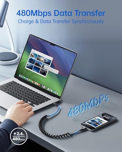 USB C Cable for Car Coiled Fast Charging Cable, USB-C 3FT Grey USB A to USB C