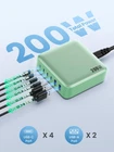 Feob 200W USB C Charger Block GaN III Fast Charging Station Hub,USB C Laptop Charger Compatible with MacBook Pro/Air,iPad,iPhone 15/14,Galaxy S23/S24 etc. 【Powerful 200W USB C Charging Station】Experience the convenience of high-speed charging for six devices simultaneously with our potent 200W USB C Charger. Our USB C charger block with 4 USB-C ports and 2 USB-A ports, Streamlining your charging process, allowing you to power up all your devices simultaneously with ease. When a single device is connected to the USB-C1 ports, it enjoys an impressive charge of up to 65W. 【Unleash Maximum Charging Speed】The USB C charger station provides the best power output for charging various devices quickly. You can fast charge both your iPhone and laptop at the same time. Power up your 16-inch MacBook Pro to 50% in just 30 minutes using the first USB-C port, the usb ports upport advanced PPS,PD3.1 and QC4.0+ technology. It built-in advanced intelligent controlling IC and multi-protection safety system to ensure safety for you and your devices. 【Universal Compatibility with up to 3000+ Devices】This GaN charger is able to charge can fast charge 1 laptop, 2 phones/tablets and 3 others at once. All ports support (quick charge) agreement, it’s compatible for MacBook Pro/Air, iPhone 16, iPhone 15/14 or previous models, iPad Pro/Air, Samsung Galaxy or previous models, Google Pixel, Dell XPS, Switch, and more, covering a whole family needs and save money&space. 【Latest GAN III Technology & Compact Design】 The USB C charger adopted GaN III generation chip technology, built-in multi-protection system and cryogenic microchips. With higher energy efficiency and upgraded heat dissipation, Gallium Nitride (GaN) makes our chargers smaller. The size of charging station is 3.7*3.7*1.3in and a weight of only 7.9 oz, which is 16% smaller than a multi-port charger. Seamless fit into your bag on-the-go.Ideal for traveling. 【Home & Travel Portable 6 Port Charging Station】The Multiport USB C Charger Station perfectly charges multiple devices for home, office and travel. The 5ft/1.5m power cord for this multiple fast charger station can be extended to the desktop, bedside, counter, nightstand, service desk, etc. Get more efficiency with all your devices within arm's reach, organize the wire jungle, saving more precious deskspace.
