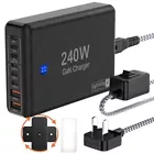 Return Policy Fast Delivery Trusted seller USB C Charger Block 240W, Super Fast Charging Station for iPhone/Samsung, 65W C Adapter for Laptops/Tablets, Low Profile Flat Plug, 5ft Braided Power Cord with Switch, Desk Cord Organizers Product Description The 240W USB C Charger features 8 ports, including 6 type-c ports with a 65W and 2 35W ports, and 2 usb-a ports. It offers fast charging for a wide range of devices, from laptops and tablets to cellphones and gaming consoles like Nintendo Switch and Steam Deck. Convenient Design: This charger comes with a 5ft braided power cord with an on/off switch, allowing you to easily control the power supply. The sleep-friendly indicator light won't disturb your rest while indicating the charging status. The 360° rotated mounting holder provides flexible placement options, and the flat plug ensures a space-saving solution. Fast and Efficient Charging: With USB C Power Delivery (PD) technology, this charger delivers fast and efficient charging for your devices. It is compatible with popular brands like iPhone, Samsung, iPad, MacBook, Kindle, and more. The GaN charger block ensures stable power output and protects your devices from overcharging or overheating. Multiport Charging Solution: This USB C charger is a versatile power adapter that can be used for various purposes. Whether you need to charge multiple devices at once or create a powered USB hub, this charger is the perfect solution. It is ideal for travel, home, office, or even as desk accessories. Quick and Reliable: The 240W USB C Charger is designed to be a quick and reliable charging solution. Its multiports and high power output allow for fast charging of multiple devices simultaneously. Say goodbye to the hassle of carrying multiple chargers or waiting for slow charging speeds. Shipping Returns Payment Shipping Shipping is FREE to all addresses other than APO/PO boxes in the lower 48 states. All our stock ships from US-based warehouses. Shipped via USPS or UPS (depending on location and package weight) Unless stated otherwise, all orders will ship within 24-72 hours of your payment being processed. Check our feedback to see the great reviews of FAST shipping we offer. Returns Seller does not accept returns Payment We currently accept payment via eBay managed payments only. Once payment is cleared, we will dispatch your shipment within 1-3 business days. Please refer to the "Shipping" tab for more information regarding shipping speed to your destination.