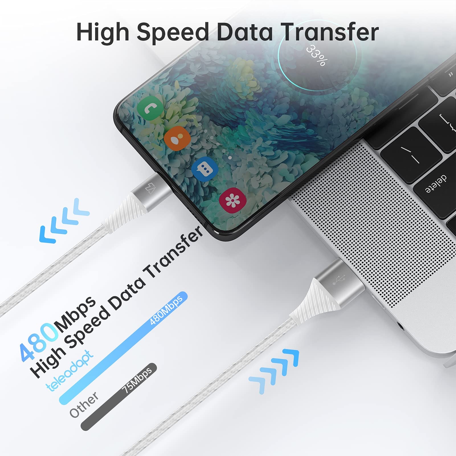 3A PD Fast Charging: USB-A to USB-C fast charging cables can power up to 60W (20V/3A) and are suitable for charging/syncing phones and tablets with USB-C sockets High Speed Data Transfer: Conforms to USB 2.0. Sync USB-C equipped devices (e.g. tablets and phones) with USB-A enabled desktop computers or laptops. Fast data sync at up to 480Mbps. Transfer multiple movies, files and songs quickly and effortlessly Extreme Durability: Tangle-resistant cotton braided cable tested up to 25,000 bends. Uses an E-mark chip to ensure safe charging. Premium aluminum alloy shell and gold-plated connector for maximum durability and reliability Universal Compatibility: Compatible with almost all phones and tablets with a USB-C port including Switch, ipad Pro 2018, Galaxy S20/S10/S9/S8, Note 10/9/8. USB-A host computers, power banks, and USB-A wall chargers What You Get: 1 × Premium Cotton Braided USB-A to USB-C Charge/Sync Cable (6ft). easy-to-reach customer service and technical support