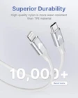 Compatibility: Aiminu usb c to iPhone cable supports PD Fast Charge 3A for iPhone 14/14 Pro/14 Pro Max/14 Plus/ iPhone 13/13 Pro/13 Pro Max/13mini/iPhone 12/12 Mini/12 Pro/12 Pro Max/11/11 Pro/11 Pro Max/XS Max/XS/XR/X/8 Plus/8 and iPad 8th iPad 2020, iPad Pro 12.9" gen1/ gen2/iPad Pro 10.5"/iPad Air3 10.5"/iPad mini5 7.9"; This cable also supports the standard charge for iPhone 7 Plus/7/6 Plus/6/6S Plus/6S etc. Note: You need a USB-C port wall charger to achieve fast charging Power delivery fast charging: The usb c to iphone charger cord supports a rapid charge up to 3A. It also support data transfer rates up to 480Mbps Nylon tangle free design: Aiminu's usb c iPhone charging cord includes built-in overvoltage protection and is tested for up 10,000 bends, making it more durable. Heat-resistant connector and premium nylon braided ensure complete safety and reliability MFi certified lightning cable: MFi certified iPhone fast charging cable uses the newest C94 Lightning connector, which support quick charger for lightning device, C94 USB C to Lightning cord more stable, safe, faster than nomal iphone cable What You Get: Aiminu 2 pack usb c to lightning cable 3ft Product Description Aiminu USB C to Lightning Cable 3ft 2Pack -Support PD Fast Charging and 480Mbps Data Sync Please Read before purcharsing These cable belongs to USB C to Lightning Cable , NOT USB A to Lightning Cable These usb c to iphone cable NOT work for android phone Aiminu USB-C to Lightning Cable supports fast charging for iPhone 14, 14 Pro, 14 Pro Max, 14 mini, iPhone 13, 13 Pro, 13 Pro Max, 13 Mini, 12, 12 Mini, 12 Pro, 12 Pro Max, 11, 11 Pro, 11 Pro Max, SE, X, XS, XR, XS Max, 8, 8 Plus, and other later models when using your USB-C Power Delivery Charger (such as 18W, 20W, 29W, 30W, 61W, or 87W USB-C Power Adapter). This usb c to iphone cable also supports the standard charge (5V/2.4A max) for iPhone 7 Plus/7/6 Plus/6/6S Plus/6S etc [Please Attention]: This item only include 2 pack 3ft usb c to iPhone charging cable, NOT include USB-C port wall charger. You need a USB-C port wall charger to achieve fast charging. The USB-A port wall charger do Not match this iPhone charging cable. This USB-C to Lightning Cable NOT compatible with 2018 iPad Pro 12.9" and iPad Pro 11 3ft USB C to iPhone Cable 2Pack work for iphone, ipad, ipod Ultra High-Quality MFi Certified USB C iPhone Charger Product Specification: Brand: Aiminu Model Name: USB C to Lightning Cable Function: Charging + Sync Current: 3A (Max) jacket: Nylon Braided +TPE C94 Connector Package include: 1*3FT Nylon Braided USB C to iPhone Cable White 1*3FT Nylon Braided USB C to iPhone Cable White This item only include 2 pack 3ft iPhone charger cable (usb c to ligtning cable), do not include a USB-C port wall charger. Type C to iPhone Cord Universal Compatible: (Incomplete List) Lightning Connector (PD Fast Charging): Compatible for iPhone 14/14 Pro/14 Pro Max/14 plus Compatible for iPhone 13 / 13 Pro / 13 Pro Max / 13 mini Compatible for iPhone 12 / 12 Pro / 12 Pro Max / 12 mini Compatible for iPhone 11 / 11 Pro / 11 Pro Max / 8 / 8 Plus Compatible for iPhone X / XR / Xs / Xs Max / SE 2020 Compatible for iPad Pro 12.9"(Gen1 / Gen2)/ iPad Pro 10.5"(2017)/, iPad Air 3 10.5 inch, iPad mini 5 Non-PD Charge (only normal charge): Compatible for iPhone 7 / 7plus / 6s / 6s Plus / 6 / 6Plus / 5s / 5c / 5 / SE (2016) Compatible for iPad Pro 9.7 inch / iPad 9.7 inch / iPad Air 9.7 inch / iPad mini 7.9 inch/ ipod touch USB-C Connector: PD Charger/PD Car Charger/PD Portable Chargers MacBook 12" 2015 / 2016 / MacBook Pro 13" 15" 2017/2018, New MacBook Air iMac 21.5", iMac 27", iMac Pro Google / Chromebook Pixel Dell XPS 13 / 15 / HP EliteBook Folio G1 / ThinkPad X1 Carbon ect. Lightening Cable fast charging Aiminu USB C to Lightning Cable 3FT (2-Pack) Supports High-Speed Charging with USB-C Power Delivery, fast charging 55% in 30 minutes. MFi Certified to ensure flawless compatibility with iPhone, iPad Series with lightning connector. No more trigger warning messages. 480Mbps High Speed Data Sync. Easily transfer music, photo and files between iPhone and MacBook. [Note]: You need a USB-C port wall charger to achieve fast charging. The USB-A port wall charger do not match this iPhone charging cable . Sturdy iPhone Cord Aiminu USB C to Lightning Cable 3 feet (2-Pack) Made for power delivery fast charging, the new lightning end is more compact, safer and faster to charge. Bid farewell to charging failure and overheating. Durable Type C to Lightning Cable Strong iPhone Charging Cord Tangle-free 3 Feet iPhone charging cable is convenient for usage while charging and sync at home/office/travel in bed, hotel rooms, and more. This item only include 2 pack 3ft iPhone charger cable (usb c to ligtning cable), do not include a USB-C port wall charger.