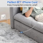 [Apple MFi certification]: MFi Certified iPhone lightning cable use the authorization newest C94 Lightning connector, quick charge for lightning devices, safely and stable, protecting your device the health of battery. [Fast Charge & Data sync]: USB-C lightning cable support fast charging up to 3A 60W max, when used with an 20W or higher USB-C Charger with Power Delivery (PD), fast charge your iPhone 14 Pro from 0% to 65% in just 30mins. It also support High speed data transfer up to 480Mbps for transferring music, movies, and more in seconds. [Universal Compatibility]: The iPhone charging cable complete compatibility with iPhone 14/13/12/11/X/XR/XS/8, iPhone Pro 14/13/12/11, iPhone Pro Max 14/13/12/11/XS, iPhone Plus 14/8/7/6/6s, iPhone SE 1st Gen/2nd Gen/3rd Gen, iPhone mini 13/12, iPad Pro 10.5 in/9.7 in, iPad Air 3/2/1, iPad mini 5/4/3/2/1, iPad 9th Gen and older, iPod Touch 5th Gen and older, iPod nano 7th Gen. Compact lightning connector head design ensure that the iPhone charger cable fit most phone cases and accessories. [Durable Design]: This iPhone charger cord made of high purity copper wires ensure faster and more stable charging. Double nylon braided has been tested to withstand at least 40000+ cycles of 90 degree bend and 10000+ plugging and unplugging lifespan. Flexible and stronger, meet all kinds of daily connection needs and long-term use. [What You Get]: 6ft lightning to USB-C cable, quality warranty and friendly customer service. If you have any questions about our 6ft lightning USB C cable, pls send us message or raise a QA, our service team will provide you with a satisfactory solution within 24 hours.