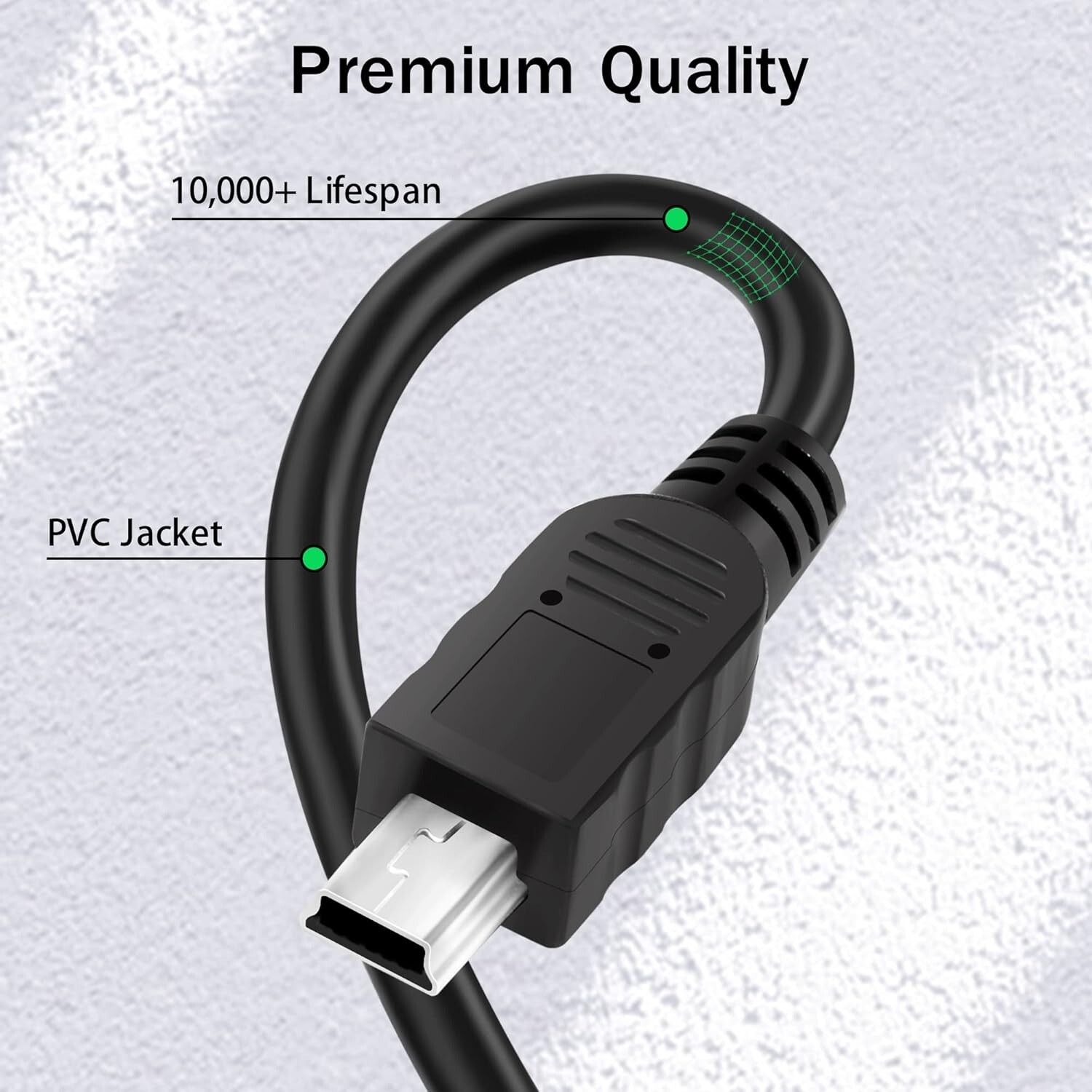 USB C to Mini USB Cable 6 Feet, Mini USB to Type C Cable, USB C to Mini 5-Pin Charging & Sync Data Cord, Compatible with PS3 Controller, Digital Camera, MP3 Player and More About this item USB C to Mini USB Cable : Connects the computer with USB-C port to game controller, camera, external hard drive, dash cam or legacy USB peripheral device with Mini-B USB port. Fast Charging and Data Sync : The USB C to Mini 5-Pin cable supports fast charging up to 2.4A and data transfer speeds up to 480Mbps. Enhanced Durability : Each cable with a tested 10,000+ bend lifespan, ensure durable for long life usage. Adopt high-quality 90P black PVC outer jacket which has an excellent texture. Widely Compatibility : Compatible with MacBook Pro/Air, Chromebook Pixel, Dell XPS 13 and other PC with usb-c port, Canon PowerShot Camera, Zoom Mic, Dash Cam and other devices with Mini USB port. Worry-Free Service: We offer a one-year warranty for this cable. If you have any questions about our products, you can contact us at any time, and our customer service will reply within 24 hours.