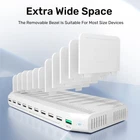 Multiple USB charging station:10 port USB charging station charging stations can charge multiple devices including iPhones, iPad, watches Android, tablets airpods, and Kindles solution. is perfect for families, schools, offices, and other high-traffic areas where multiple devices need to be charged simultaneously. (Charging Cable NOT included) Safe and reliable: 60W cell phone charging stations is designed with over-current, overvoltage and short-circuit protection to ensure maximum safety and reliability. You can trust it to protect the device from any electrical hazards that may occur during the charging process. Quick charging: Use QC3.0 fast charging technology,Enables fast charging with up to 75% improvement in charging efficiency and supports USB DCO V1.2 charging specifications, the maximum support of 2.4A output, our device charging station can ensure the efficient and secure charging of all equipment, save your time and maintain small tools. Run smoothly. Organizer who saves space: Innovative shape design, you can adjust the width of the bracket to meet the needs of different devices keeping the equipment through our charging station terminal there is no clutter, which saves you valuable table or desk space. Smart Sleep Technology: Our radio chargers are equipped with Smart Sleep Technology to help conserve energy and reduce power consumption when the device is fully charged. This makes it an effective and economical solution for your charging needs. There is also an LED power indicator that provides a visual understanding of the device's power-on status.
