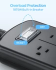 WARNING DO NOT completely submerge it underwater because it's only IPX6 rated rather than IPX8. IPX6 waterproof power strip can handle splash, rain, and even instant water flow. The water can still flow into the socket, but can't connect the power, or damage the circuit. PowerAutoI tech makes the product electrically shockproof, which prevents foreign objects match and connect the protected circuit. What's in the box 1 power strip 1 mounting bracket 1 instruction manual After-sale Service We provide a 5-year warranty and replacement for all our products. Your request will be confirmed and fixed in 24h. 【9-in-1 Power Extension】 6 waterproof outlets and 3 USB ports simultaneously charge for 9 devices. The AC outlets provide 1875W/15A rated power. The USB ports get 5A/2.4A/12W for each port, sharing 5A/3A/15W power. Note: USB3.0 for power strip defines USB fast charging tech 3rt generation, doesn't mean USB 3.0 of data delivery. 【Definition of IPX6 Waterproof】 IPX6 rated waterproof surge protector can withstand rain, water splash, and even water flow. But it can't be completely submerged in water as it's not IPX8 rated. Water flows into the sockets can do no damages to the protected inner circuit due to our patented design, and it will flow out through the drainage holes on the back. Note: rubber cover on the switch is just for extra double safety. 【Electric Shockproof Outlet】 Only a US standard plug can exclusively match the deliberately designed structure of the socket, which is patented by USTPO. After then, the circuit gets truly connected and provides power for your devices. Which means foreign objects such as forks, tweezers, keys, and even children's fingers can't get powered through these Electric Shockproof outlets. 【All-round Safety Design】 The built-in circuit breaker can automatically shut off when overloaded, preventing overheat-caused fire. The casing of the outdoor power strip is made of 1382°F heat-retardant ABS+PC material. 16AWG heavy-duty (3*1.3 mm²) swivel extension cord has a reinforced junction to avoid crack, which is accredited by UL. The rubber-covered switch makes an extra safety guarantee. 【Easy to Install in 2 Ways】 A versatile hanging bracket is included in the box, which can be easily adhered to a smooth surface indoor, or can be tightly screw-fixed on the tree outside. And there is a hanging hole on the back of the weatherproof surge protector. It's easier than the traditional way to mount a surge protector outdoor or indoor.