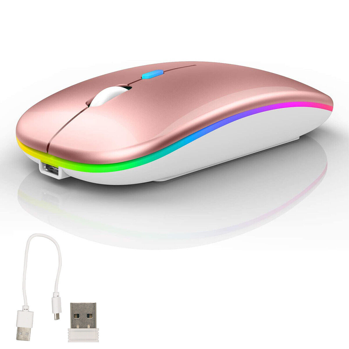 Wireless Bluetooth Mouse, LED Slim (Bluetooth 5.0 + USB) 2.4GHz Rechargeable Silent Bluetooth Wireless Mouse for Laptop/MacBook/iPad iOS 13 and Above Keyboard Wireless Mouse Rechargable 2.4G Ultra Silent Optical Mouse With USB Ergonomic Wireless Bluetooth Mouse, LED Slim (Bluetooth 5.0 + USB) 2.4GHz Rechargeable Silent Bluetooth Wireless Mouse for Laptop/MacBook/iPad iOS 13 and Above Features: DUAL MODE BLUETOOTH MOUSE (BT 5.0 + 2.4GHz): With dual mode connection, the mouse realizes free switches between two devices with one mouse only by pushing the switch.【Please turn on the "Assistive Touch" on iPad: Setting-Accessibility- Assistive Touch for an iPad usage.】 COLORFUL LIGHT: 7 different color led light changes randomly while in use, offering soothing light, creating cool and fancy atmosphere for work and play. UNIVERSAL COMPATIBILITY: The Bluetooth Mode is compatible with Windows 8/Windows 10, iPad/iPhone iOS 13 and above, Mac OS 10.10/Android 5.0 or above system, it's easy to pair and connect. 2.4Hz Wireless Mode works with computer, laptop, desktop with USB port, plug and play. SILENT CLICK & HIGH RESPONSIVENESS : Adjustable DPI levels among 800, 1200 and 1600 to meet different needs. Quiet click allows quiet working environment. Ergonomic Design : Super sleek design, ensure the mouse lightweight while fitting the curve of the palm to the greatest extent. Comfortable to hold in hand with the soft touch top. The symmetrical design allows it to fit both hands. POWER SAVING: The mouse is rechargeable, comes with charging cable, no extra battery is needed. It will fall asleep after 10 minutes no-operation to save power and provides long term usage. You can wake it up by clicking any button. Note: 1. Due to the light and screen difference, the item's color may be slightly different from the pictures. Specifications: Type: Wireless Mouse Max. DPI: 1600dpi (800-1200-1600) Number of Buttons: 4 (keys) Connectivity: Wireless (Bluetooth / 2.4GHz USB) Operating distance: within 10 (m) Wheel direction: four-way wheel Bluetooth:Yes Description: 1. Built-in rechargeable battery 2. Mouse rated working current: 6-15mA; 3. Three-stage adjustable resolution: 800-1200-1600DPI; 4. Wireless working channels: 16, automatic frequency hopping; 5. Wireless working frequency: 2.402-2.480GHz; 6. Wireless transmission speed: 1-2M bps; 7. Effective distance: about 10 meters; 8. Acceleration: 28 inches/sec; 9. Image processing: 3000 frames per second; 10. Mouse button life: 3-5 million times; 11. Working temperature: -15℃ to 60℃; 12. Product specification: 113*58*26MM 13. Material ABS plastic Package: 1x Bluetooth Wireless Mouse Item Specifics Brand Unbranded Type Slim Mouse Connectivity USB/ Bluetooth Number of Buttons 4 Features Silent/ Rechargeable/ LED Lighting/ Ergonomic/ Adjustable DPI Adjustable DPI Ergonomic LED Lighting Rechargeable Silent Model Mouse Color Rose Gold Tracking Method Optical Unit Quantity 1 Item Weight 90g Wireless distance 10m Item Size 112 x 58 x 25mm Maximum DPI 1600 Payment We only accept payment via eBay. Please make your payment within 5 days after auction ends otherwise a non-payment dispute will be opened. We will ship to your eBay address. Please make sure your eBay address is correct before you pay. Shipping After receiving your payment, your order will be shipped within 1-2 business days from Australia. Delivery times may vary , especially during peak periods or toward remote area. You may choose what service you need. Economy Delivery : 2-6 Working Days Standard Delivery : 2-5 Working Days Express Delivery : 1-3 Working Days We are not responsible for anything late or lost by logistics. Returns Restocking fee: There will be a 15% restocking fee if returning mistakenly order or no longer needed item, read the tips below on how to avoid it. Read the item description carefully instead of only the listing title Choose the correct item from the drop-down menu (if applicable) before clicking on the add to cart button. If you have any questions regarding the item, please send us a message before purchasing. DOA (Dead On Arrival) : Take a picture of the outer box if you have received a damaged package, check all the contents inside for any physical damage and send the pictures to us as evidence within 3 Days for a return or refund. We are not responsible for any kind of compatible issues, or problems related to any specific software or games. Contact Us If your item has any issues, do NOT leave a Negative feedback without contacting us through eBay first, we will try our best to get it resolved and provide an address for you to return the item once it is qualified. Returns will be processed within (7) business day after receiving the item in original condition. Keyboard DESCRIPTION PAYMENT SHIPPING RETURN POLICY CONTACT US Wireless Mouse Rechargable 2.4G Ultra Silent Optical Mouse With USB Ergonomic Wireless Bluetooth Mouse, LED Slim (Bluetooth 5.0 + USB) 2.4GHz Rechargeable Silent Bluetooth Wireless Mouse for Laptop/MacBook/iPad iOS 13 and Above Features: DUAL MODE BLUETOOTH MOUSE (BT 5.0 + 2.4GHz): With dual mode connection, the mouse realizes free switches between two devices with one mouse only by pushing the switch.【Please turn on the "Assistive Touch" on iPad: Setting-Accessibility- Assistive Touch for an iPad usage.】 COLORFUL LIGHT: 7 different color led light changes randomly while in use, offering soothing light, creating cool and fancy atmosphere for work and play. UNIVERSAL COMPATIBILITY: The Bluetooth Mode is compatible with Windows 8/Windows 10, iPad/iPhone iOS 13 and above, Mac OS 10.10/Android 5.0 or above system, it's easy to pair and connect. 2.4Hz Wireless Mode works with computer, laptop, desktop with USB port, plug and play. SILENT CLICK & HIGH RESPONSIVENESS : Adjustable DPI levels among 800, 1200 and 1600 to meet different needs. Quiet click allows quiet working environment. Ergonomic Design : Super sleek design, ensure the mouse lightweight while fitt