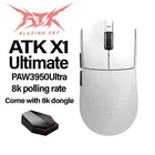 Product name: ATK Ray Sky X1 Ultimate Ultra Lightweight Wireless Mouse Color: Black/White Coating: Ice Sense Coating Sensor: PAW3950Ultra Main control chip: Nordic nRF52840 Transmission technology: Second generation Smart Speed Wireless transmission technology/ATK's professional competitive firmware Return rate: Wired 8K/Wireless 8K Battery: 500mAh Battery life: 150 hours (1000Hz) Product weight: 51g+3g (without foot pads) Main button microswitch: Omron white dot light microswitch-D2FP Side button: Huannuo Scroll wheel: F-Switch E10 flagship Foot pad: Two full-size competitive foot pads are standard Connection method: Wireless 2.4G/Type-C Dongle: Standard 8K dongle