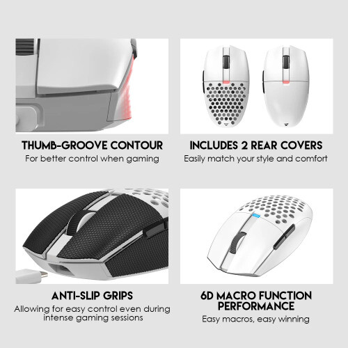 ARIA XD7 Super lightweight Gaming Mouse 59 Grams Super Lightweight All of the features of a high-end mouse, without sacrificing durability. A unique lightweight design ensuring maximum performance, while reducing wrist-fatigue. Perfect for relaxed claw, claw, fingertip, and more! Fan Favorite Egg Shape Fantech Aria is designed from massive feedback from the enthusiast community, in regard to specifications and shape. A true classical egg shape brought into the modern day of super lightweight mice! Tri-mode Connectivity Fantech Aria features tri-mode connectivity unlike any other high-end gaming mouse on the market. No matter if you prefer wired, 2.4ghz wireless or even Bluetooth wireless freedom, we’ve got you covered. Huano 80 Million Premium Switches Fantech Aria Huano Version now features enthusiast-grade clicks, by using our binned Huano switches. Precisely implemented to give an amazing feel. Used by gamers and enthusiasts alike, all around the world. TTC Gold Scroll Wheel Encoder Fantech Aria includes a TTC Gold scroll wheel encoder ensuring gamers get maximum performance with noticeable steps and tactility in their favorite games. No mushyness! HUANO Side Button & Scroll Switches Fantech Aria is designed with Huano Black Shell White Dot side switches, and includes a Huano Black Shell Blue Dot scroll wheel switch, giving gamers perfect tactility while remaining comfortable for true gaming performance. Now updated with Huano Transparent Blue Shell Pink Dot main switches too Customizable Lift-off Distance & Polling Rate Fantech Aria features accurate customizable LOD, to ensure pure precision on any mouse pad, hard or soft. Additionally features adjustable polling rate, up to stable 1000hz!