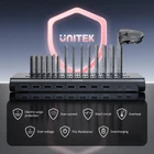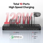 Unitek 120 Watt 10-Port Family-Sized Desktop USB Fast Charging Station charges up to 10 USB devices simultaneously with only 1 wall charger outlet. Simply connect all your smartphones, tablets, cameras, speakers, headset, music players ect, and quickly charge all your devices at home or office. It is an ideal solution for you to charge all your power-hungry devices easily. It's suitable for corporate, home, school, public transport station, restaurant etc. Ultra Powerful The load is controlled in accordance with a specific program of a microcontroller, which adjusts the current and the charging time according to the capacity. Awarded the US Department of Energy's highest possible energy efficiency rating (DOE 6). 10 ports power out 60 watts of power, enabling simultaneous multi-device charging. Discreet & Space-Saving The innovative space saving design, charge your devices and organize them on the charger without removing protective cases, makes it arranged in an orderly, tidy way. The solid and stable base is able to support up to 10 devices to be put on the top. Specifications *Input: AC100-240V/50-60HZ *Output: DC 20V/6A Max (Total Output Capacity) *Power supply: 120W 20V/6A *LED indicator: Power / Access * Regulatory Approvals: UL / cUL, CE, FCC, RoHS 10 multiple Fast Charging Ports: (7) USB-A Apple 2.4A +(1) QC 3.0 port+(1) Type-C 15W+(1) Type-C PD 45W, the charging base can simultaneously charge 10 USB powered devices. Put all your USB devices in one place. 45W PD USB-C port support charging Mac book Air Laptop. Certified safety: Power adapter has UL, CE, FCC, RoHS certified and Unitek's multi-protect safety system protects your devices which against over-charging, over-heating, over-voltage and short circuit. Fast Charging & Smart IC: The charging station provides up to 20V/6A ,much faster then regular chargers and equipped Smart IC. Automatically recognize your devices, distribute the perfect charge to each charging device individually and simultaneously. Charging will automatically stop when the battery is full. Surge protection keep your appliances safe. Adjustable Dividers: Detachable Design can be Adjust width easily to any size you need, hold iPad or Phone even it with the shell. We provide 13Pcs dividers for your need, 7Pcs tall, 6Pcs short, 1Pcs iWatch Stand which totally fix you're needed, even more, fits all iPad, tablets,Laptop, iPhone e-readers.Suitable for home use on kitchen counter, desk, nightstand or office, hotel. Universal Compatibility: The Unitek 120W charging station designed for your lphone iPhone 14/14 Pro Max/13 pro/13 pro max/ 12/ 12 pro / 11 / 11 pro /iPhone XS / XS Max / XR / X / 8 Plus, iPad Pro / iPad Air / Air 2 / iPad mini, Samsung Galaxy S10, S10Plus, Mac book Pro/Air,iWatch,Switch,Steam Deck and other electronics. What We Offer: 1*USB Charging Dock, 13* detachable baffles, 1* iWatch Stand and 1*20V/6A DC power adapter, 24h friendly customer service and email support. NOTE: Short charging cables are NOT INCLUDED. Please make sure the weight of devices is bear by the charging station instead of the dividers when using. Suggest place less than 11" tablets and smartphone, and please don't place laptop on the charging station.