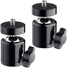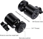 Tripod Mini Ball Head Tripod Ballhead Mount with Removable 1/4" Hot Shoe Adapter 360° Swivel Camera Brackets Ball Head for Light Stand, Tripod, Monopod,Flash light ,Monitor. Tripod head is made of alloy metal, ABS plastic, strong and durable. Weight: 75g / pc, Dimension: 5.4x2.9cm / 2.13x1.14inch (upright), compact and lightweight, easy to carry. The hot shoe adapter is removable to reveal 1/4 "screw on each end. Compatible for most cameras,tripods,monitor, LED light, etc. Can be attached directly to the DSLR hot shoe, or brackets / cages to yours construction solid keeps your devices safe. The max load weight is 2.5Kg; with anti-slip rubber on the top for better protection. Camera brackets ball head supports panorama function: Horizontal 360 ° rotation for panorama photography; tilt rotation, 90 °swivel for portrait format shots. With Locking knob: Aiming and horizon leveling can be easily accomplished. You also can use the knob to adjust to the desired angle to meet your needs at different angles. The package include 2 pack Mini Ball Head. Universal 1/4" Swivel Mini Ball Head Screw Tripod Mount, 360 Degree Rotating Mount Base Adapter for DSLR Cameras HTC Vive Tripods Monopods Camcorder Light Stand ball mount 1.This ballhead is easy to carry and install. 2.Can withstand heavy and move smoothly. 3.Designed to fit most camera, projector, flash light, light stand, tripod which with standard 1/4" thread hole. 4.360 degree rotation swivel mini tripod ball head. 5.Made of solid aluminum and metal, the Locking Nut is made of plastic. Specification: - Material:Aluminum Alloy,metal and PVC - Thread:1/4" - Pan: 360 °. - Diameter: 1.14"/29mm - Height:2.17"/ 55mm - Weight:2.5 ounce/78g Package 2 x ball head