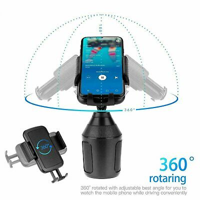 Universal 360° Adjustable Phone Mount Car Cup Holder Stand Cradle For Cell Phone Access your phone’s functions and features in the car Improve convenience by having your phone where you need Transform your phone into a GPS with ease Improve road safety and keep your eyes on the road Rotate the phone between a horizontal and vertical setting Adjust your phone to the perfect angle through the smart design Universal phone mount can hold most smartphones Perfect for devices like Apple iPhone 11, 11 Pro, 11 Pro Max, XS Max, XS, XR / Samsung Galaxy S10+, S10, Note 10 / Google Pixel 3 XL and much more Can hold devices up to 3.65” wide Smart release button makes installing and removing your device easier Install this holder in the cup holders of your car Adjustable base can expand and contract to fit an assortment of different sized cup holders Base diameter of 2.16” – 3.54” (Approx.) Approx. Neck Length: 1.77" Non-slip grips around the holder will ensure the holder does not move around Sleek design will look great in the cabin of your car