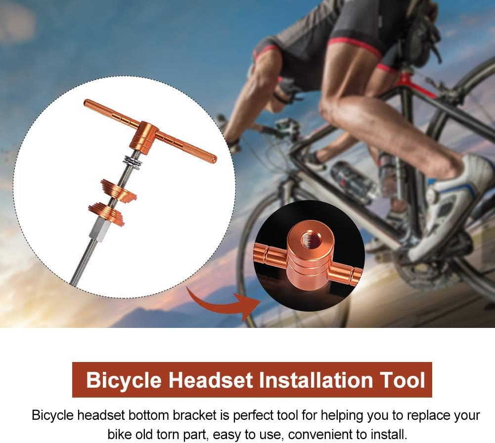 Usage: Bike Headset Installation Tool special designed for bike headset and bottom bracket installation, make you job done easily and professional. Materials: The thread rod is made of harden stainless steel, the press mount and the handles made of aluminium alloy. Size: Bike Headset Press-in Tool Length of the thread rod is about 24.5cm/9.65inch, diameter ia sbout 12mm/0.47inch. Easy Install: Bicycle headset bottom bracket is perfect tool for helping you to replace your bike old torn part, easy to use, convenient to install. Press Block Design: Pressure block design, the reverse side is used to assemble the press-in bottom bracket, and the sinking table is designed to avoid crushing the bearing during installation. Bike Headset Cup and Bottom Bracket Press Installation Tool,Universal Bike Headset Installation Tool,Bike Headset Press-in Tool,Bicycle Repair Accessories Bearing Installer Features: Usage: Bike Headset Installation Tool special designed for bike headset and bottom bracket installation, make you job done easily and professional. Materials: The thread rod is made of harden stainless steel, the press mount and the handles made of aluminium alloy. Size: Bike Headset Press-in Tool Length of the thread rod is about 24.5cm/9.65inch, diameter ia sbout 12mm/0.47inch. Easy Install: Bicycle headset bottom bracket is perfect tool for helping you to replace your bike old torn part, easy to use, convenient to install. Ball Bearing Design: Ball bearing design makes it more stable while using and would not hurt your bike frames. Press Block Design: Pressure block design, the reverse side is used to assemble the press-in bottom bracket, and the sinking table is designed to avoid crushing the bearing during installation. Remind: Please use the grease when installing, this could do a lot helpful for your job and protect your headset or bottom bracket. Specifications: Item Type: Bicycle Headset Installation Tool Material: Aluminum Alloy, Stainless Steel Color: Orange+Silver Stainless Steel Thread Rod: Total Length: About 24.5cm/9.65inch, Diameter: About 12mm/0.47inch Size: About 27 x 6 x 6cm/10.63 x 2.36 x 2.36inch(L x W x H) Package Includes: 1Pc x Bicycle Headset Installation Tool Notes: Transition: 1cm=10mm=0.39inch 1. Due to the different monitor and light effect, the actual color of the item might be slightly different from the color showed on the pictures. Thank you! 2. Please allow 1-3cm measuring deviation due to manual measurement.