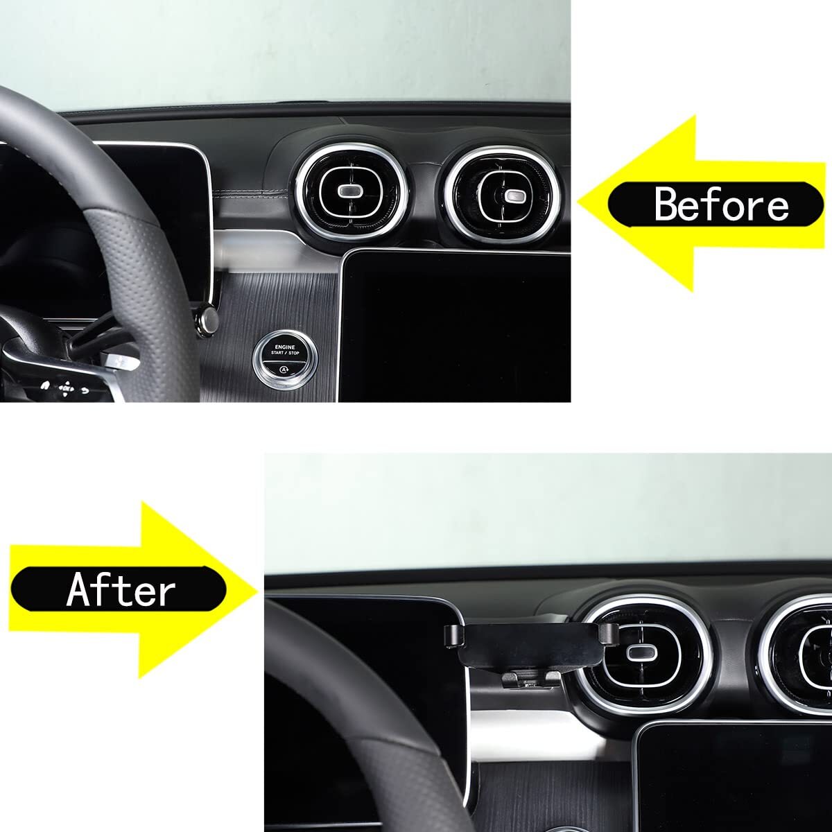 Upgraded Vent Clip: The Car phone mount features a stronger, thinner vent clip and an innovative support ring for extra support, which could hold your phone securely on an air vent in your car. Adjustable Attachment: The phone holder car features an adjustable support ring, it can be rotated to any angle without blocking the vents. The Adjustable Bottom Foot can fit all phones. Perfect Protection: The car vent phone mount is equipped with a thick layer of silicone which could protect your smartphone from wear and tear. BIG PHONE FRIENDLY: Innovative roller skating clamp arm was extended big enough for big phone even with the thick case. WHAT YOU GET: ensures you with an 36-month pleasant experience and top customer service. Please feel free to let us know if have any questions about this car phone mount. With the car holder for cell phone.