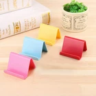Feature: ★ Hold your smartphone or mini tablet at a comfortable angle, which is very suitable for watching videos, reading, recording videos or simply browsing the web, playing games and other hands-free operations at home, office and travel. ★ In line with the human scientific perspective, proper viewing angle can relieve fatigue and protect eyes . ★ The simple and stylish design makes this product the best choice as a holiday gift for your friends or relatives. It can be used as a gift, but also more suitable for the elderly to watch movies and watch the news. ★ Comfortable viewing: The desktop phone holder fixes your smart phone or mini tablet at a comfortable angle, which is very suitable for watching videos and video recording. Material: plastic Size: 6×4.5cm/2.36×1.77in Color: red, pink, blue, yellow The product contains: 1×bracket