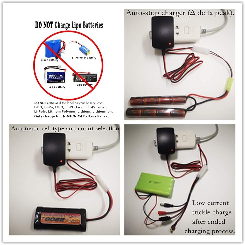 Universal RC Battery Charger for 3.6V-9.6V NiMH/NiCd Packs Red, Black Product Details Package Dimensions: 3 x 2.8 x 2 inches Item Weight: 5.6 ounces Item model number: Autocharger-2.0 Manufacturer: Sourcingpower Brand: Sourcingpower Color: Red, Black Output Voltage: 9.6 Volts Specification Met: CE Input Voltage: 120 Volts (AC) AUTO STOP SMART BATTERY CHARGER- Charges the NiMH/NiCd battery pack of 3-8 cells(3.6V,4.8V,6.0V,7.2V,8.4V,9.6V). The battery is automatically powered off when fully charged; TRICKLE CHARGE- The maximum charging time is 6 hours. There is trickle current after the power is turned off. Fast charge for NiCd/NiMH battery pack; HOBBY BATTERY CHARGER- With Delta Peak detection function, at the same time can eliminate the memory effect of the battery. Power all your hobbies with one charger. Such as battery packs for rc helicopters,tamiya rc trucks, Airsoft gun, RC Cars, and or remote controlled toys. Includes standard size Tamiya connector, standard to mini Tamiya adapter; 3.6V-9.6V NiMH/NiCd Battery Packs Hobbies For Airsoft Batteries; Make sure this is what you want. Not applicable: LiPO, LIPO, Li-Po, LI-PO, Li-Polymer, Li-Poly, Lithium Polymer, Li-ion, Lithium-Ion, Lithium. Only suitable for 3-8 cells of NiMH/NiCd Battery Packs. Mostly used for battery charging of toy, model cars, boats, aircraft,etc.