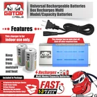 Gator Cable Universal Rechargeable Batteries Box Recharges Multi Model/Capacity Batteries Specifications: Input: AC 100-240V AC 50/60Hz Output: AA/AAA/SC/C/D:1.2V DC*4 150mA;9V DC*2 25mA No Load Power Consumption: 1W MAX Full Load power consumption: 4.5W MAX Battery Charge Rate: >85% Size: 7.7 in x 3.7 in x 2.1 in Weight: 10.5 oz Made from durable ABS (fire retardant / flame resistant) Certified by RoHS, CE, FCC and CEC Features: Six LED lights show charging status Applicable for all power voltages globally Constant charging current prolongs the batteries life span Batteries of different sizes or capacities can not be charged together This charger is for indoor use only. Keep away from moisture and heat The charger has no auto shut-off. Shut off after required time Compatible Battery Models: NiCd AA NiMH AA NiCd AAA NiMH AAA C size D size 9V NiCd 9V NiMH Included in Package: 1 x Batteries Recharger Device 1 x AC Power Cable 1 x User Manual Batteries Not Included (Recharging Box Device Only) We Offer The Lowest Prices On eBay for OPTIMUM Quality Cables + Free Shipping On All USA Orders! BUY 4 OR MORE GATOR CABLES GET FREE U.S. PRIORITY MAIL SHIPPING! ALL ORDERS ARE SHIPPED OUT WITHIN 1 TO 8 HOURS! Ultra Fast - FREE Shipping Worldwide Shipping From USA to All USA International Shipping No Waiting 3 to 4 Weeks Rugged ABS Casing Strong Durable Rugged Heavy Duty Cables & Battery Chargers Premium Cables & Chargers Ultimate Performance Great Value CLICK ON OUR eBay STORE