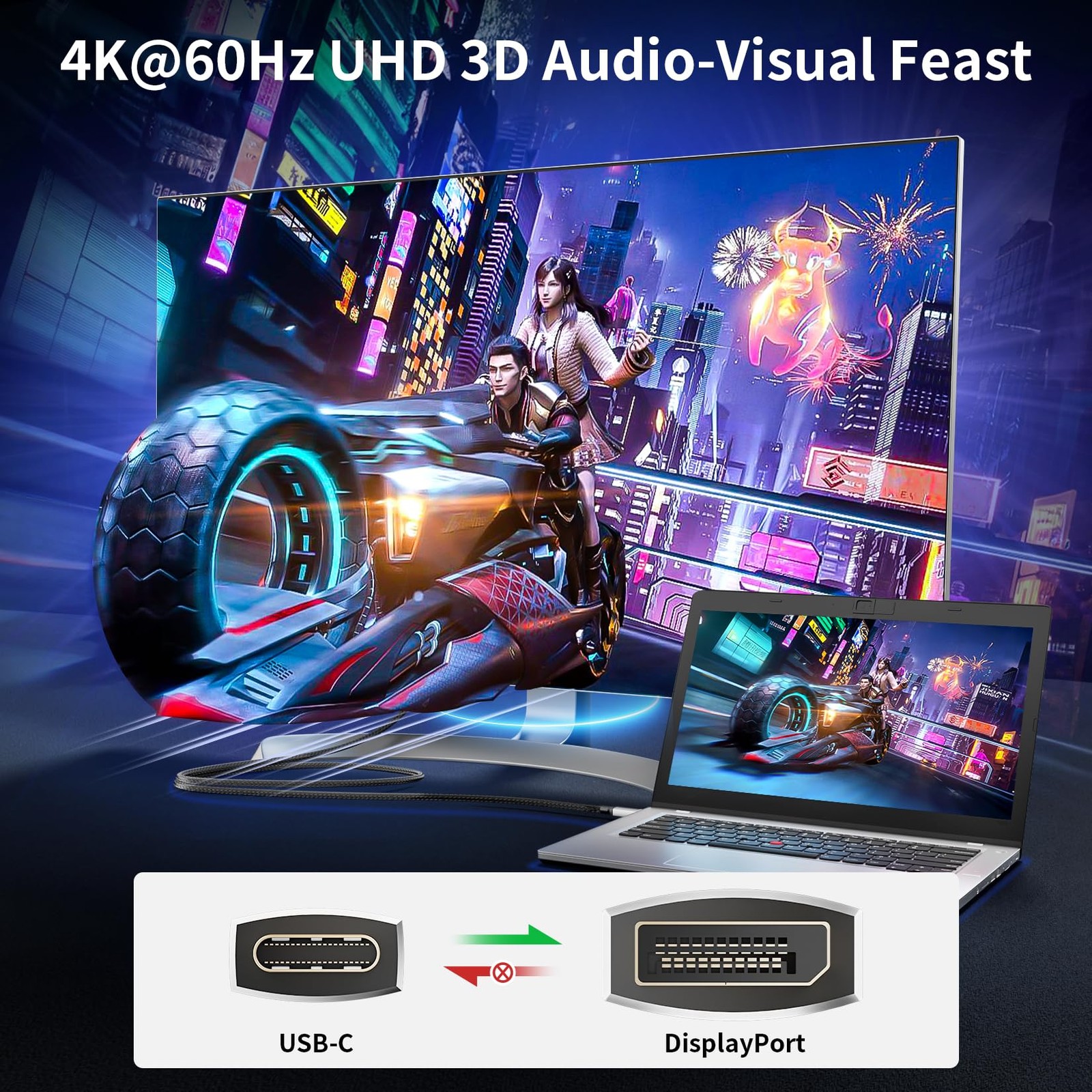 USB C to Displayport Cable 4K@60Hz 4ft/1.2m, Short USB Type C to DP 1.2 Cord [Braided, Gold-Plated, Aluminum Shell] 2K@165H/144Hz for MacBook Pro Laptop Projector TV PC USB 3.1 Type C to DP 1.2 Cable: This USB 3.1 Type C male to DP 1.2 male converter video cable connects a USB C port-enabled phone/laptop/tablet/desktop to a Displayport-equipped Monitor, TV, or Projector. Supports HDR, HDCP 2.2. Backward compatible with DisplayPort 1.1 High Resolution & Refresh Rate: USB C (thunderbolt 3 compatible) to Display Port connector lead supports resolutions and refresh rates up to Ultra HD 4K@60Hz, 2K@165Hz, and 2K@144Hz, allowing to experience crisp images and vibrant colors for stunning visuals and smooth performance Plug & Play: The 1.2m/4ft USB-C to Display port monitor cable can be easily connected without needing additional drivers or software, making it user-friendly across different devices. Measuring 1.2 meters in length, this cable strikes a balance between portability and usability. Its lightweight design allows for easy transport, making it an excellent choice for those who need to connect their devices on the go, whether in a meeting room or at a café Well-built: Constructed with robust gold-plated connectors, a durable and flexible nylon braided jacket, and a sturdy metal case, this USB Type C to DP adapter cable can withstand daily wear and tear, ensure enhance durability, superior cable performance and maximum conductivity Notice: 1)This USB-C cable is without a PD charging port. 2)It's a unidirectional cable. It can only convert the signal from type C to DP, and it cannot connect from DP to USB-C The Braided USB Type C to DisplayPort adapter cable lets you harness the video capabilities that are built into your USB-C connection, to deliver the astonishing quality of Ultra HD to your 4K or 8K display and supporting resolutions up to 4K@60Hz 2K@165Hz 2K@144Hz Specifications: - Input Connector: USB Type-C/Thunderbolt 3 24-pin Male - Output Connector: DisplayPort 20-pin Male Package Contents: USB C to DisplayPort Cable x1 SHIPPING Domestic Buyers - We ship within 3 business days of payment, usually sooner - We offer FREE shipping on all orders! - We only ship to the lower 48 states, no APO/FPO addresses or PO Boxes allowed - We have confidence in our products, but if you are not fully satisfied please contact us within 30 days of purchase and you will get full refund. International buyers – please note: Import duties, taxes, and charges aren't included in the item price or postage cost. These charges are the buyer's responsibility. - Please check with your country's customs office to determine what these additional costs will be prior to bidding or buying. Return Policy - This product comes with 30-Days Money Back Guarantee. - If you receive an item and it doesn't work properly or you don't like it because of any reason at all, - we have a 100% refund/return policy. We will ship you a new item or refund your money for the full sale amount. - For all returned products, buyers MUST contact us for the returning address. * Order Cancellation Policy ** You can return a product for up to 30 days from the date you purchased it. 1. The seller reserves the right to cancel the special case only due to eBay cancellation fee. 2. The decision of seller is the final. 3. The seller will respond to the cancellation request within 2 business days. Please wait for the result of cancellation. 4. In case the cancellation is not completed by some reasons, the buyer can follow the options below to get the refund. 4.1 The buyer can reject the item when it arrives. 4.2 The buyer can send the item back to the seller within 30 days If the buyer receives item (USA Shipment ONLY). The seller will provide the FREE return label to the buyer when the buyer opens " Return Item" case on eBay by using the reason as "Change my mind" ONLY. 5. When buyer has placed the order. The order will be processed and completed by automatic warehouse system within 5 minutes. In case that buyer sends the cancellation request after 5 minutes of placing the order, the request will be rejected. **Sending direct message to cancel the order is not allowed for every case.* Return Policy For the return case - If buyer would like to return the items for refund or replacement, please CONTACT SELLER to receive the free return label from seller. The refund or replacement will be processed with the tracking number of return label which is provided by seller only. The other ways of return which are not approved by seller will not be processed for the refund or replacement.