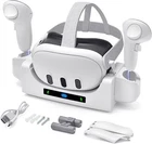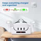 About this item 【Fast Charging Accessories】 The Kuject charging dock for Quest 3 offers simultaneous dual charging convenience for both the Quest 3 and touch controllers. Paired with the official 18W charging adapter and charging cable, the VR headset can reach a full charge in just 3 hours, while the controllers only require 4 hours. (Note: It doesn't utilize built-in sensors for wireless charging and isn't compatible with third-party grips.) 【Two Usage Modes】 Our charging station is not only suitable for desktop use but also features a rotatable controller tray, enabling wall-mounted installation and maximizing vertical space utilization. This effectively prevents everyday collisions, reducing unnecessary interference and risks. 【Storage and Display Base】 The charging stand serves as both a powerful charging tool and an exquisite base for your VR devices. When not needed for charging, effortlessly organize your Quest 3 headset and touch controllers, maintaining a clean and tidy space while turning your Quest 3 into a captivating centerpiece. 【Multiple Charging Protections】 Equipped with an intelligent protection chip, it provides multiple safeguards, including over-voltage, over-current, and over-charge protection, creating the safest charging environment. We aim to offer gamers a reliable and worry-free charging experience, eliminating concerns about potential overcharging due to forgetting to turn off the power, thus extending the device's lifespan. 【LED Indicator Light】 Featuring an LED screen, you can easily monitor the charging status of your Quest 3 and controllers. While charging, the icons will be displayed in red, turning green or blue when fully charged. The product includes 1*charging dock, 2*charging batteries, 2*battery covers, and 2 *screw components. (Note: adapter and charging cable not included). Product Description