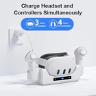 About this item 【Fast Charging Accessories】 The Kuject charging dock for Quest 3 offers simultaneous dual charging convenience for both the Quest 3 and touch controllers. Paired with the official 18W charging adapter and charging cable, the VR headset can reach a full charge in just 3 hours, while the controllers only require 4 hours. (Note: It doesn't utilize built-in sensors for wireless charging and isn't compatible with third-party grips.) 【Two Usage Modes】 Our charging station is not only suitable for desktop use but also features a rotatable controller tray, enabling wall-mounted installation and maximizing vertical space utilization. This effectively prevents everyday collisions, reducing unnecessary interference and risks. 【Storage and Display Base】 The charging stand serves as both a powerful charging tool and an exquisite base for your VR devices. When not needed for charging, effortlessly organize your Quest 3 headset and touch controllers, maintaining a clean and tidy space while turning your Quest 3 into a captivating centerpiece. 【Multiple Charging Protections】 Equipped with an intelligent protection chip, it provides multiple safeguards, including over-voltage, over-current, and over-charge protection, creating the safest charging environment. We aim to offer gamers a reliable and worry-free charging experience, eliminating concerns about potential overcharging due to forgetting to turn off the power, thus extending the device's lifespan. 【LED Indicator Light】 Featuring an LED screen, you can easily monitor the charging status of your Quest 3 and controllers. While charging, the icons will be displayed in red, turning green or blue when fully charged. The product includes 1*charging dock, 2*charging batteries, 2*battery covers, and 2 *screw components. (Note: adapter and charging cable not included). Product Description