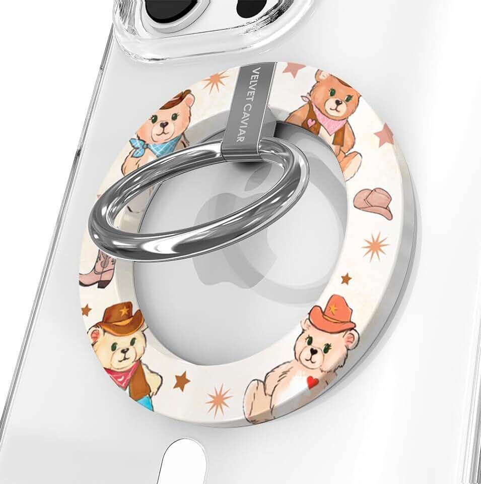 Velvet Caviar Compatible with Magsafe Phone Grip Ring Holder with Adjustable Stand - Removable Magnetic Accessories for iPhone 12| 13| 14| 15 (Cowboy Teddy Bear)