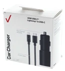 Verizon Car Charger 45W USBC for iPhone Features: Charger LED illuminates to indicate power Certified by Applet to meet strict quality testing and ensure compatibility Package contains : Car adapter with charge/sync cable