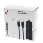 Verizon Car Charger 45W with USB-C to USBC Cable Package contains: 6 Ft USB-C to USBC cable Car adapter Features: Super fast charge on compatible devices Charger LED illuminates to indicate power